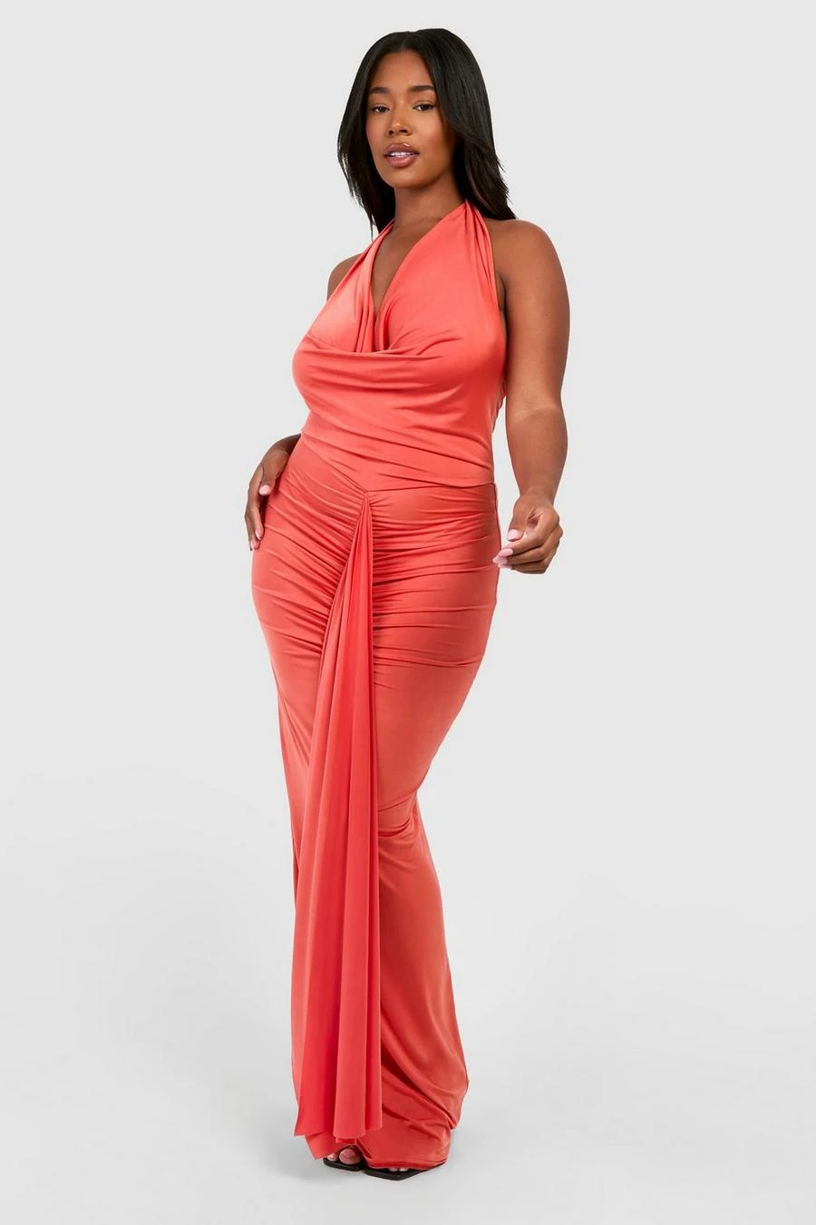 BOOHOO Plus Cowl Neck Ruched Maxi Dress