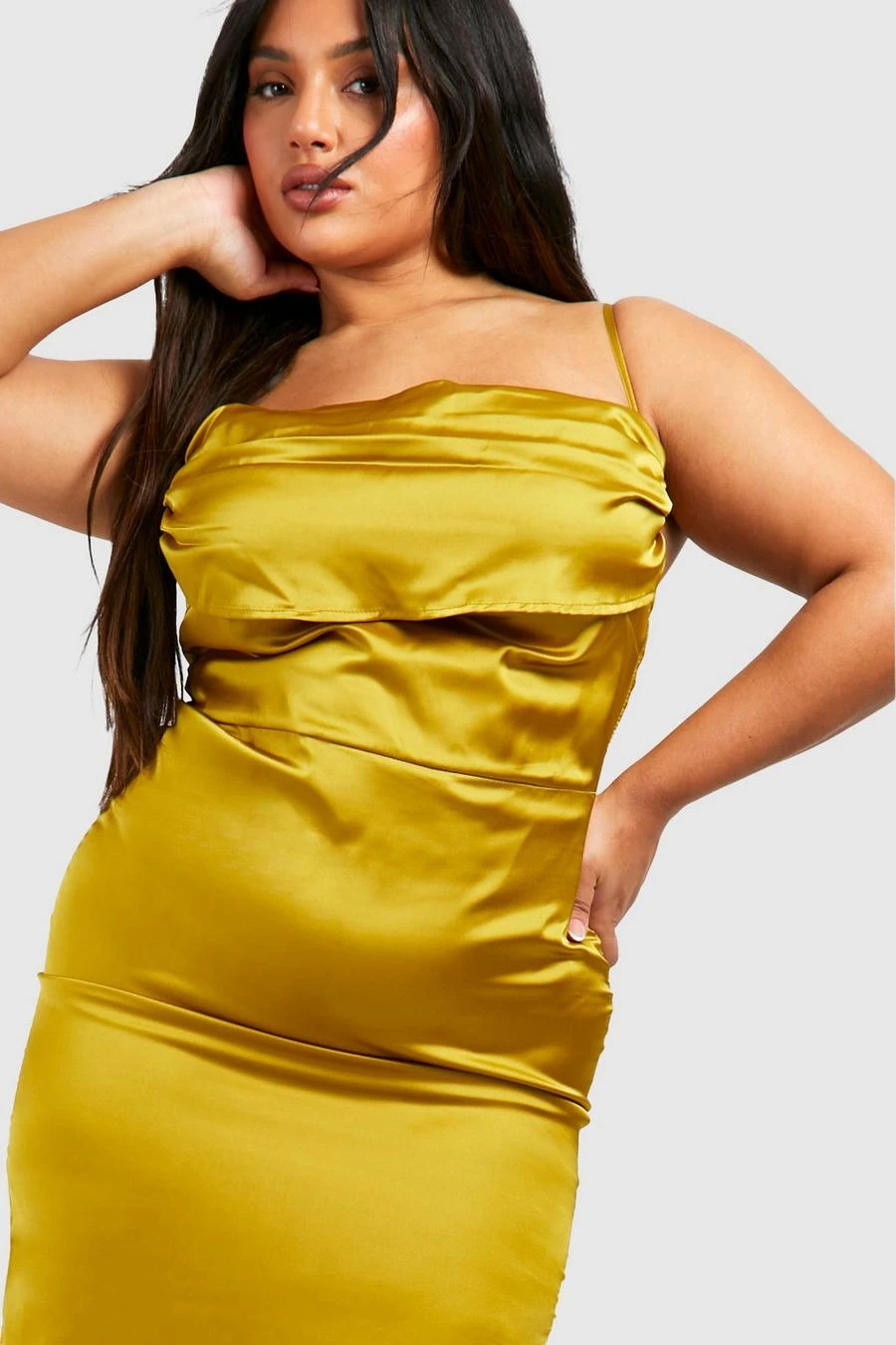 BOOHOO Plus Cowl Neck Strappy Maxi Slip Dress