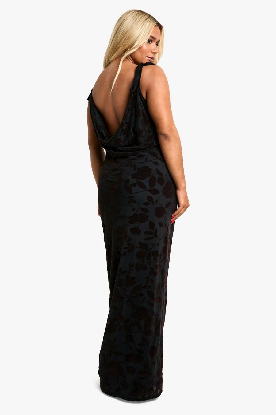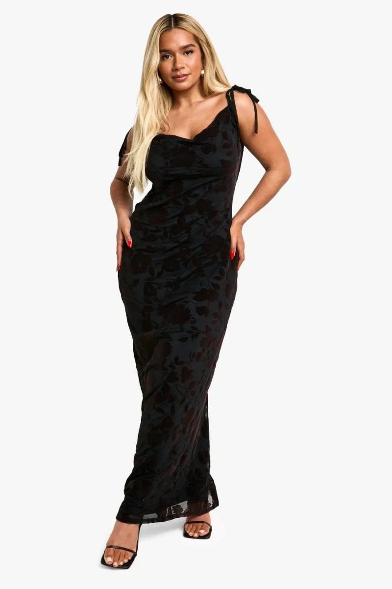BOOHOO Plus Devore Tie Shoulder Maxi Dress