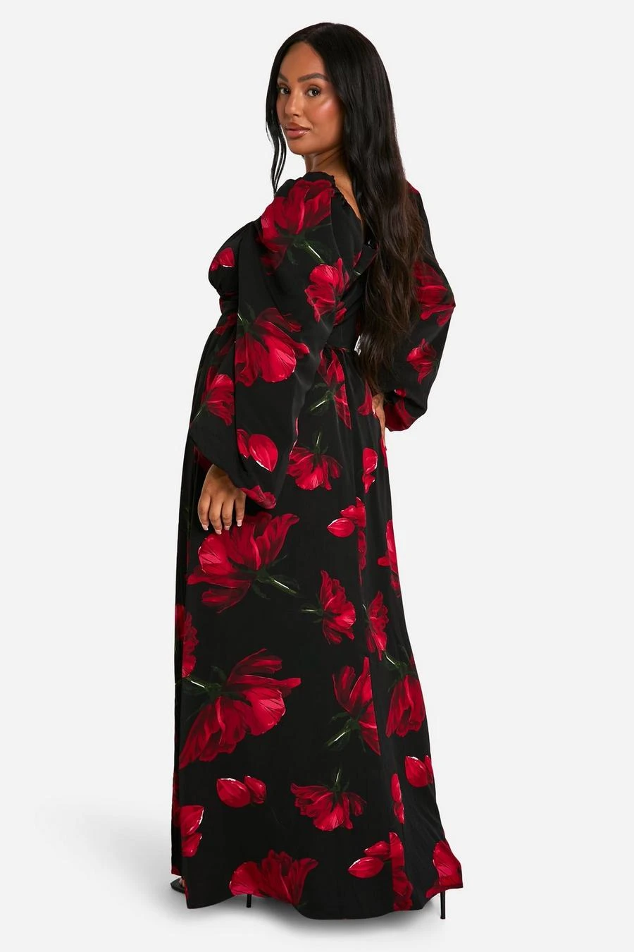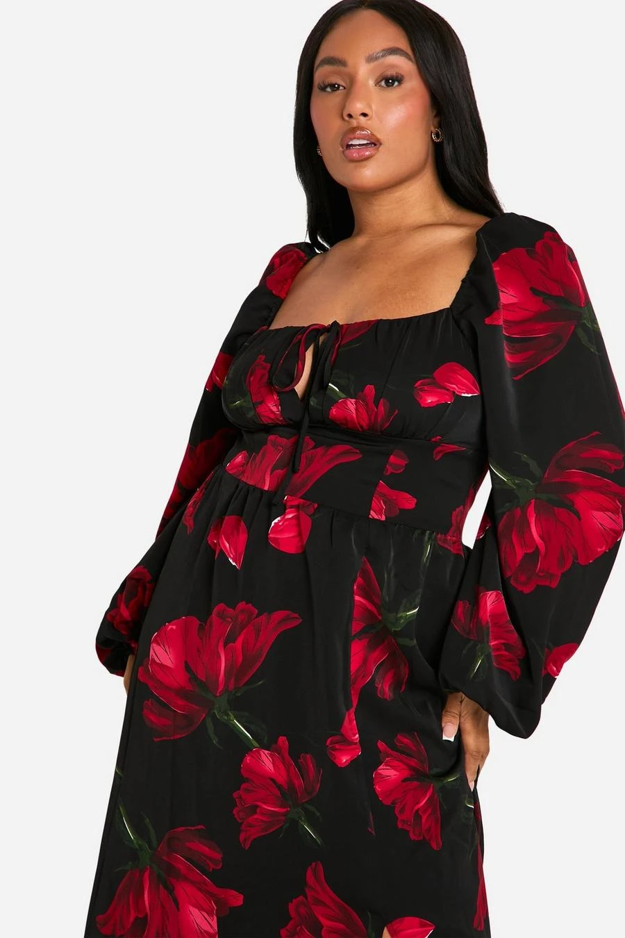 BOOHOO Plus Ditsy Balloon Sleeve Milkmaid Maxi Dress