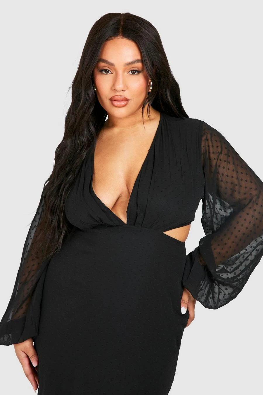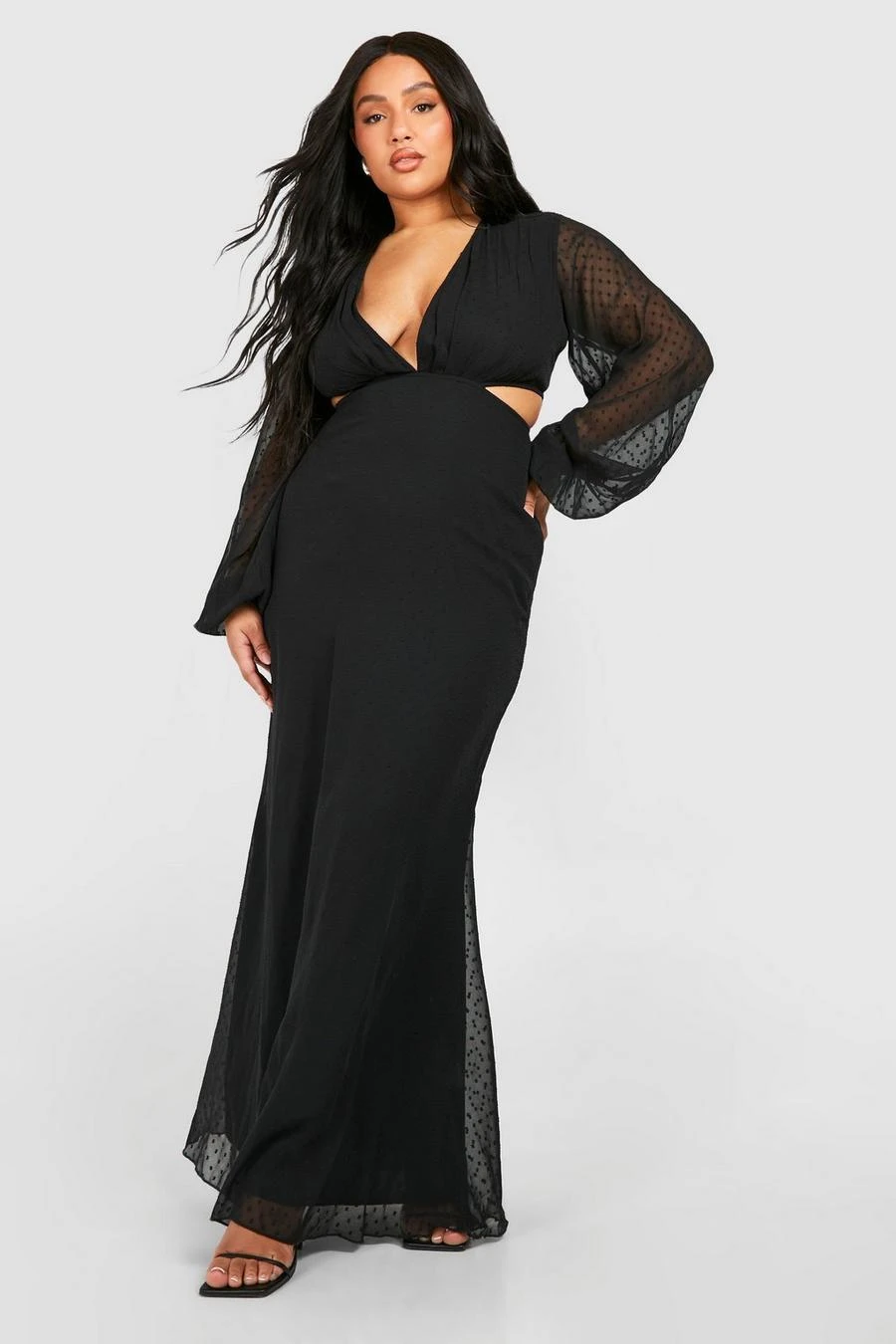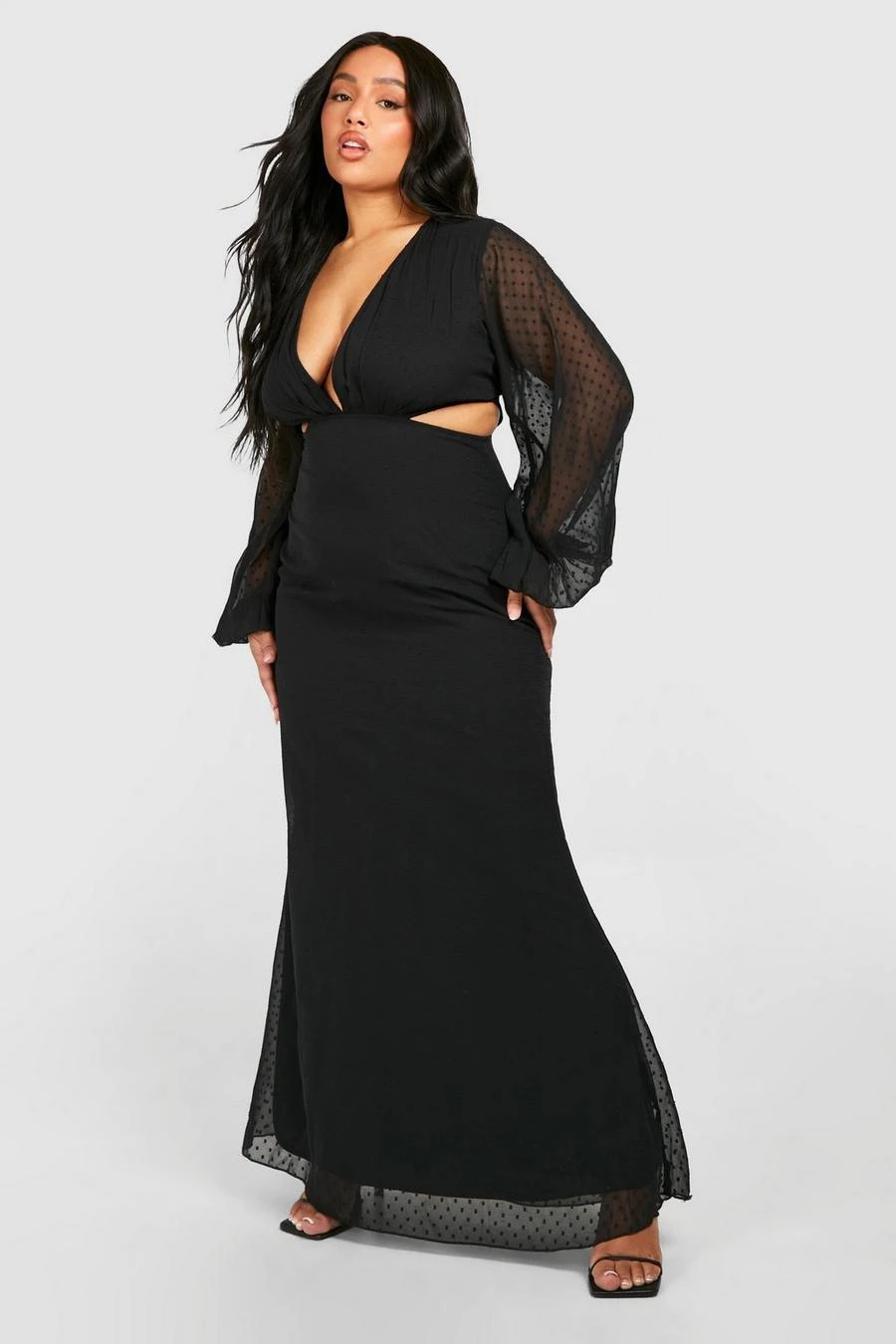 BOOHOO Plus Dobby Mesh Cut Out Maxi Dress