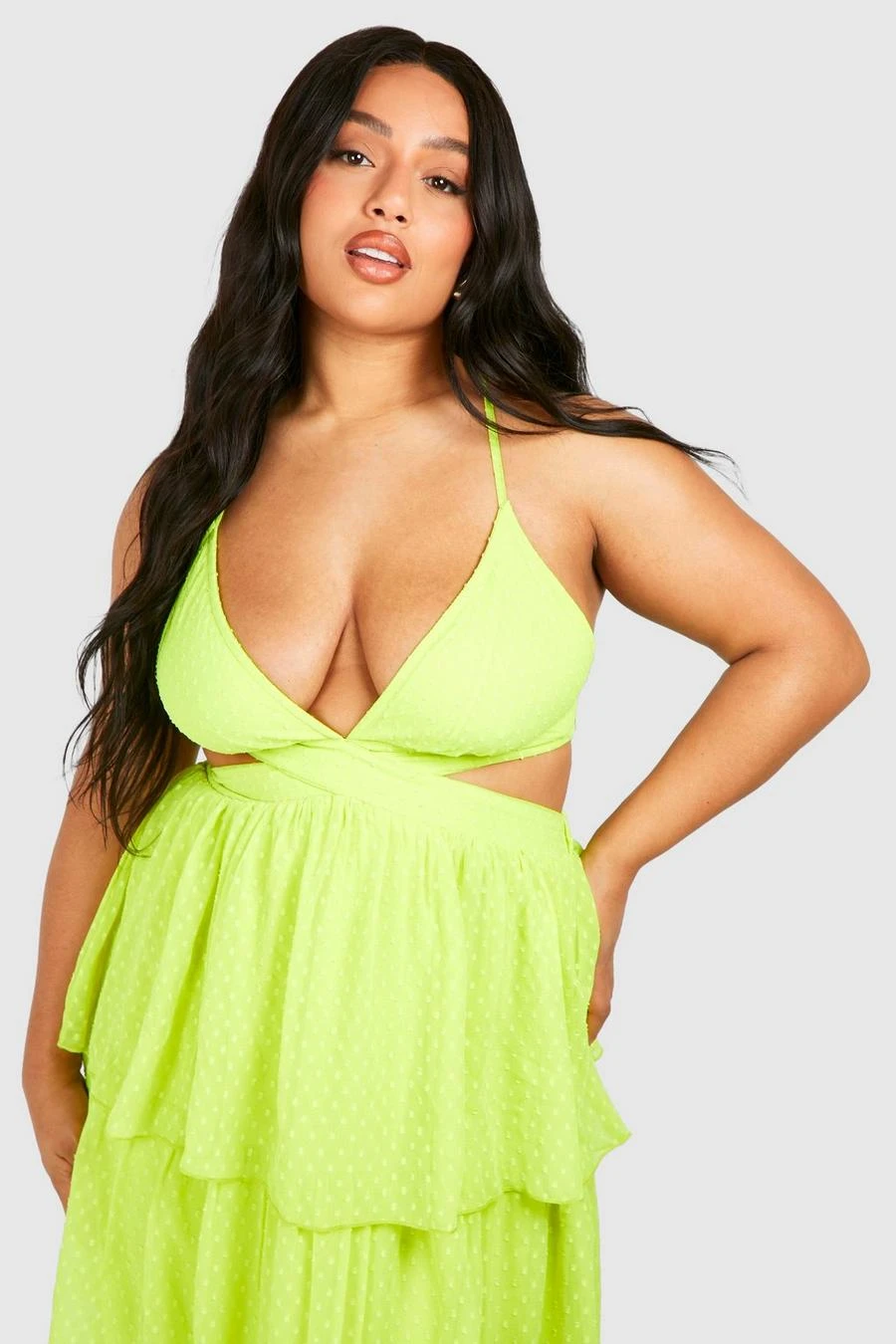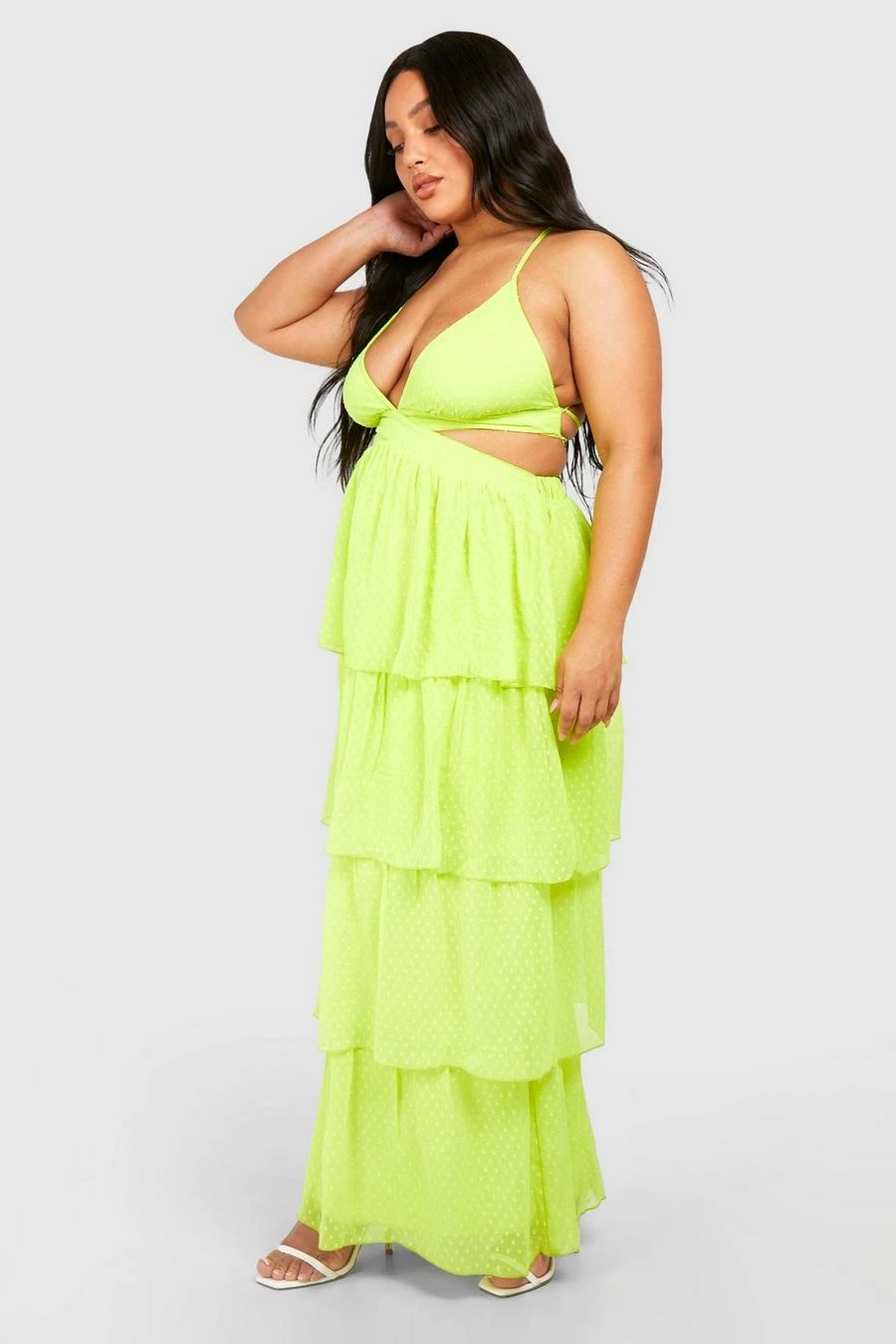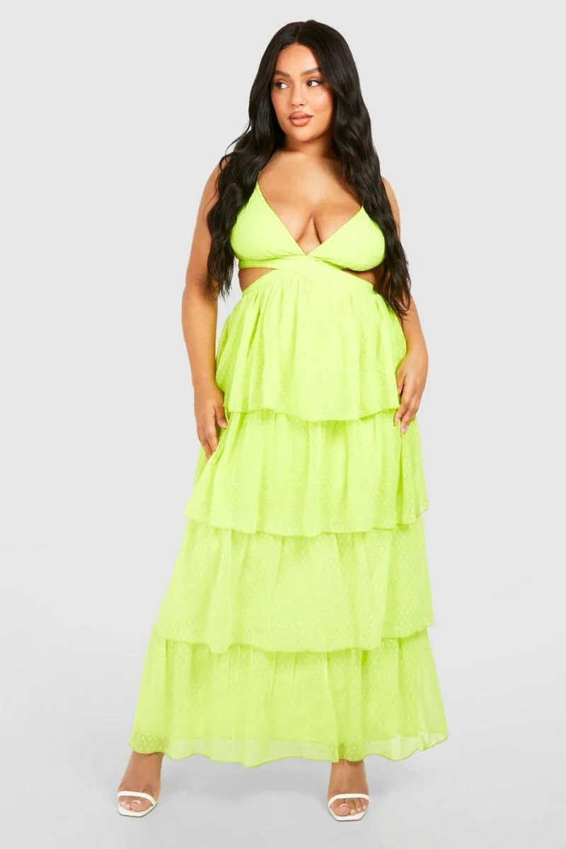 BOOHOO Plus Dobby Ruffle Maxi Dress