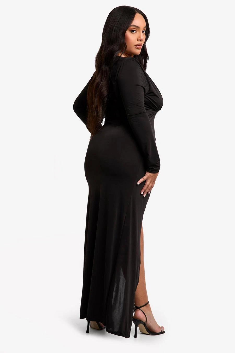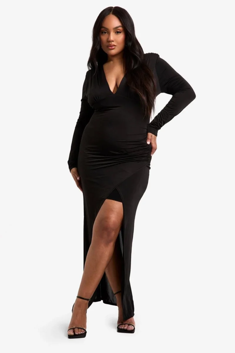 BOOHOO Plus Double Shoulder Pad Wrap Maxi Dress