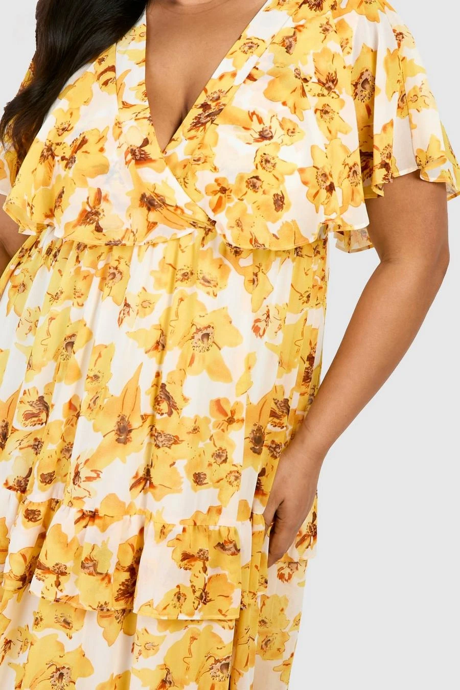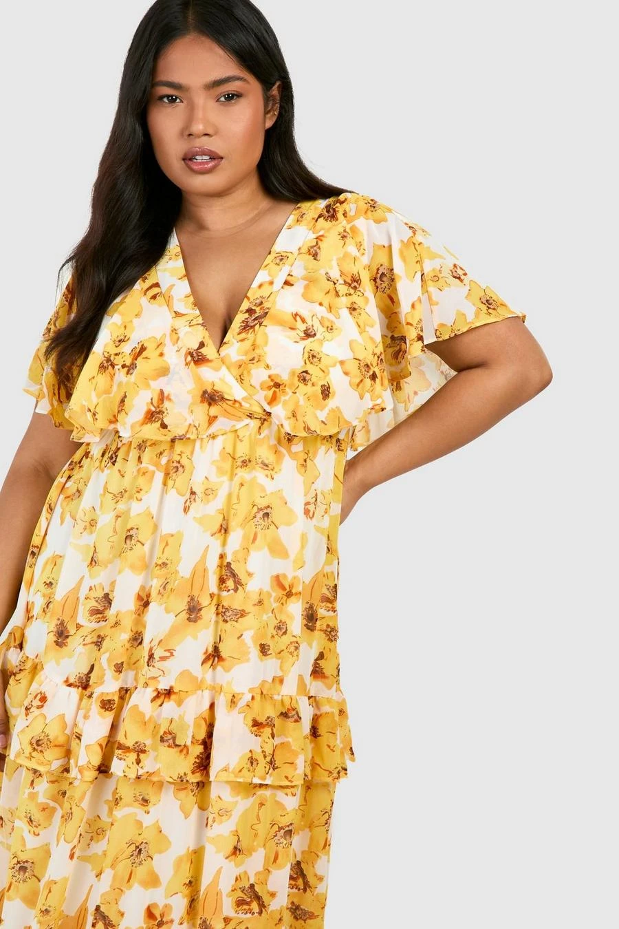 BOOHOO Plus Floral Print Angel Sleeve Maxi Dress