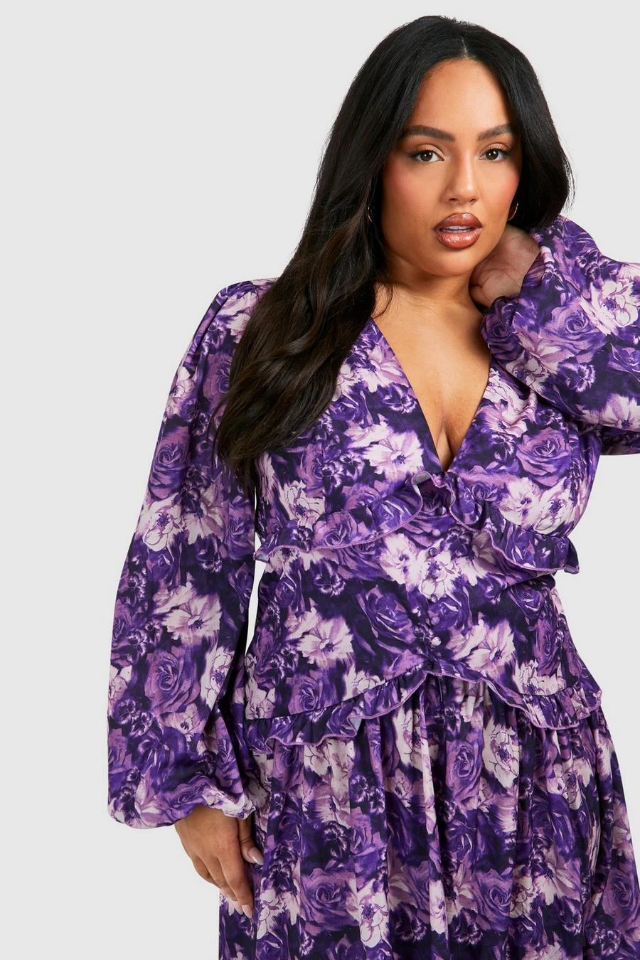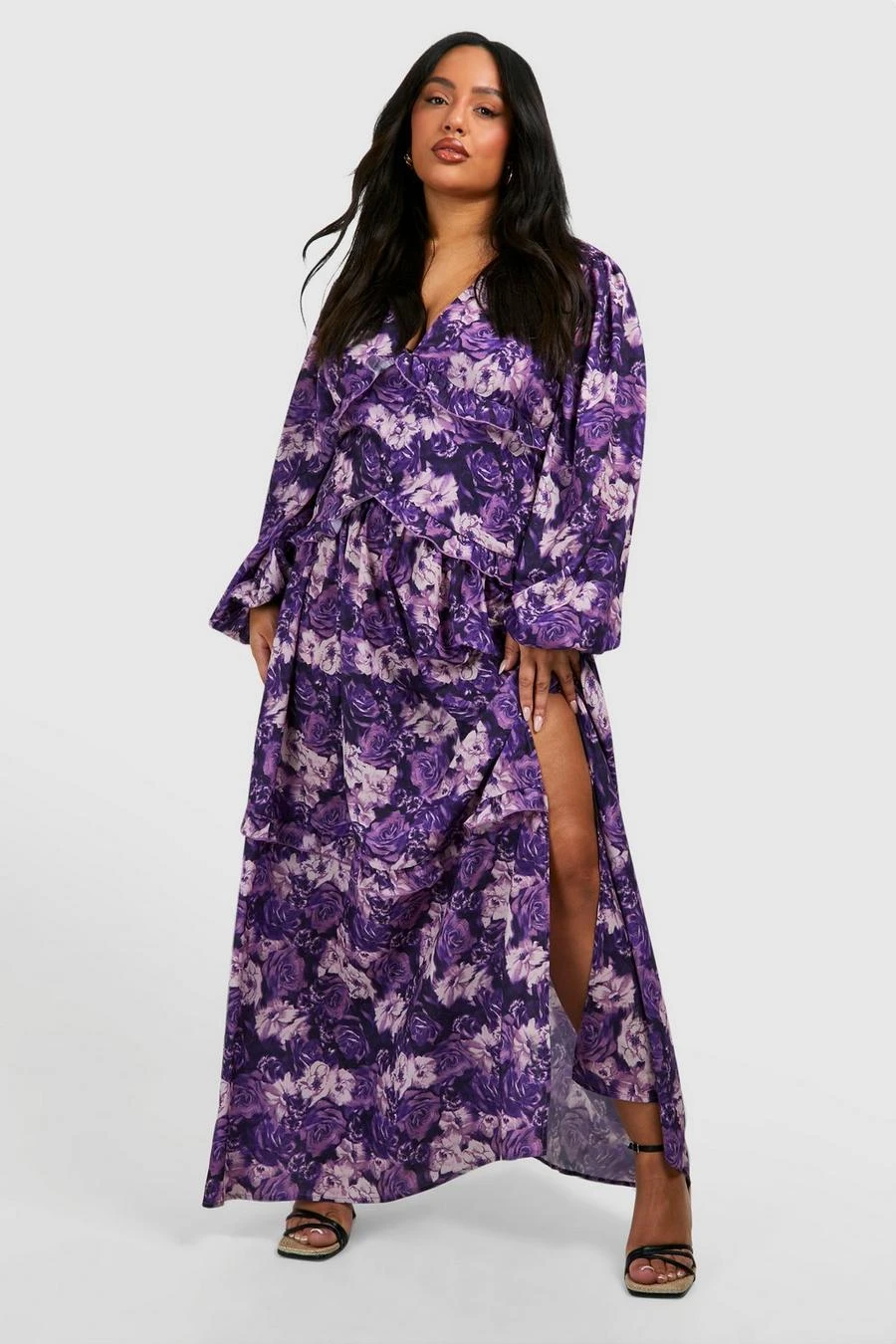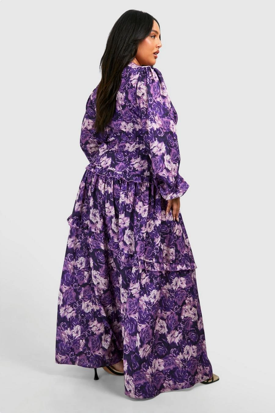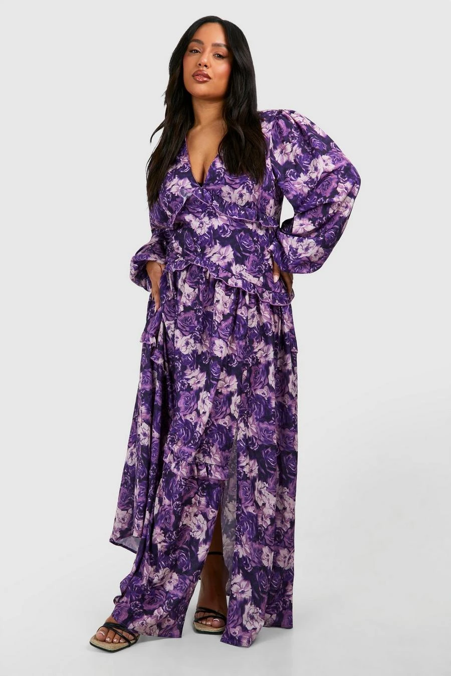 BOOHOO Plus Floral Print Frill Waist Detail Maxi Dress