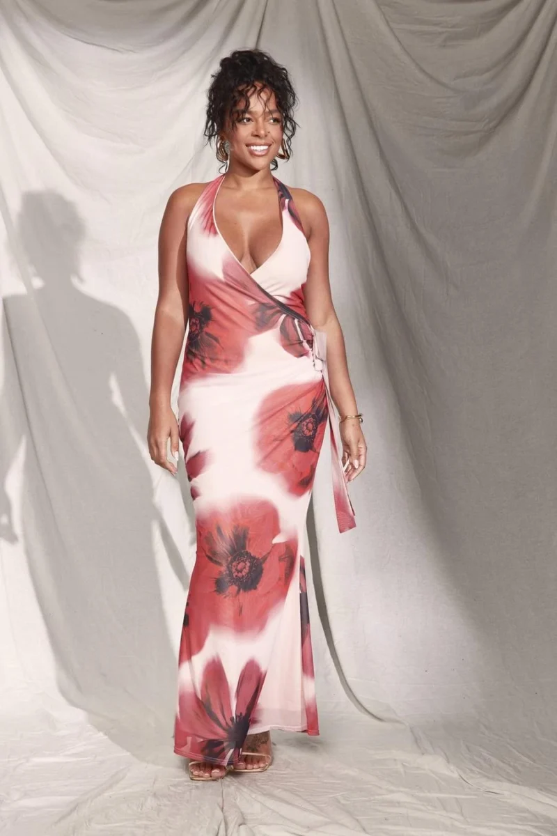 BOOHOO Plus Floral Wrap Cowl Maxi Dress
