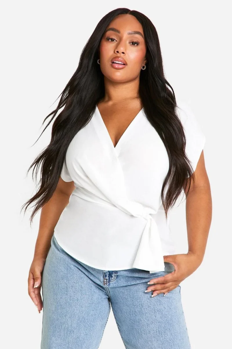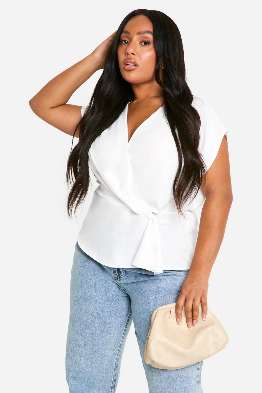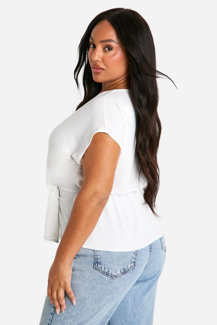 BOOHOO Plus Hammered Wrap Knot Front Blouse