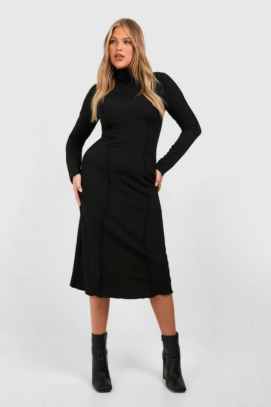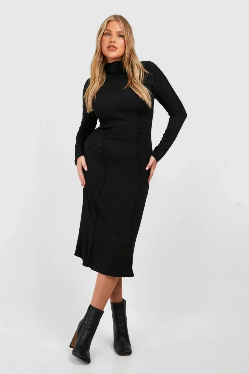 BOOHOO Plus High Neck Seam Detail Midi Dress