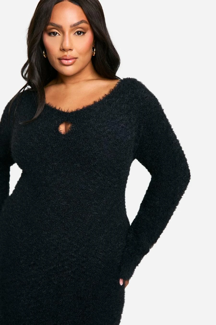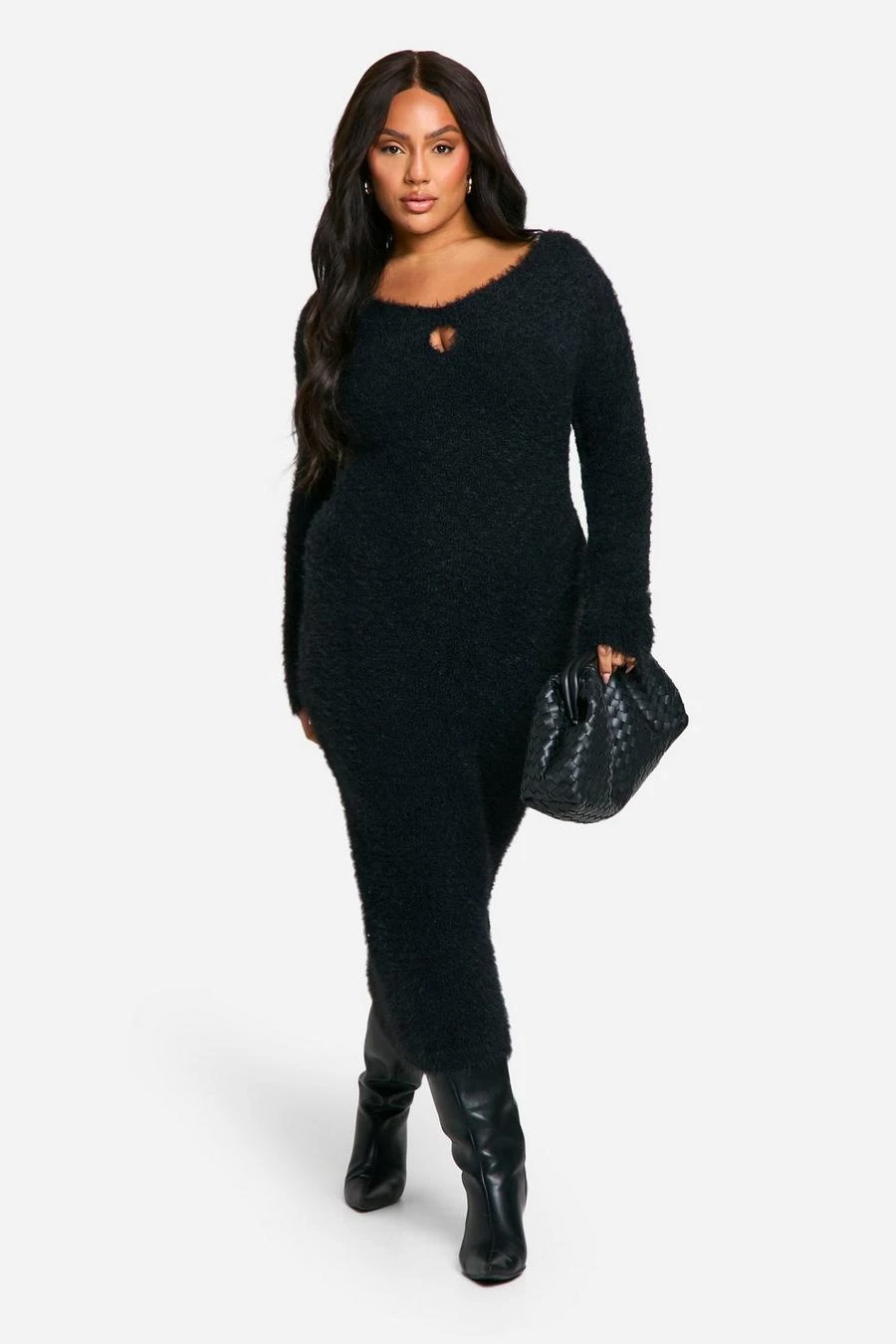 BOOHOO PLUS KEYHOLE KNITTED MAXI DRESS
