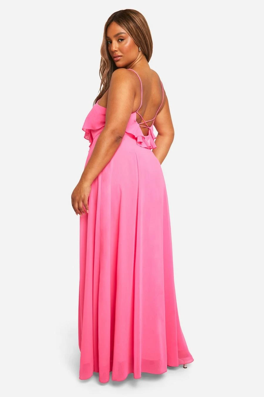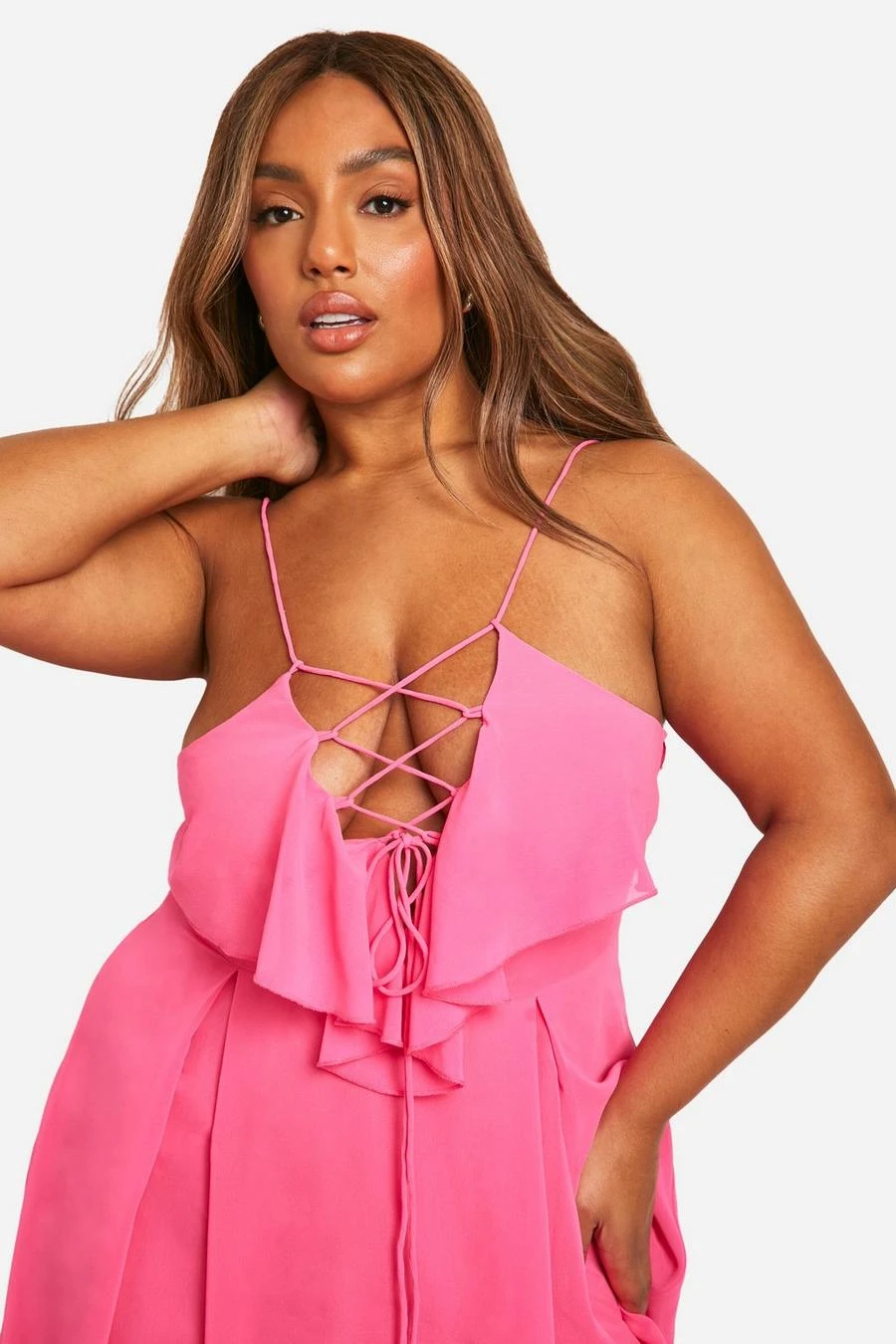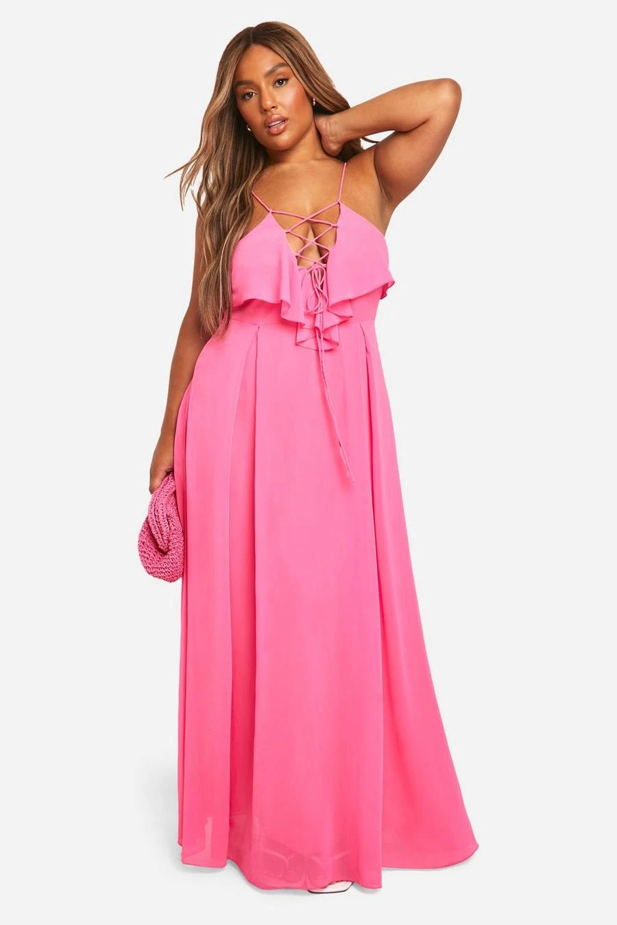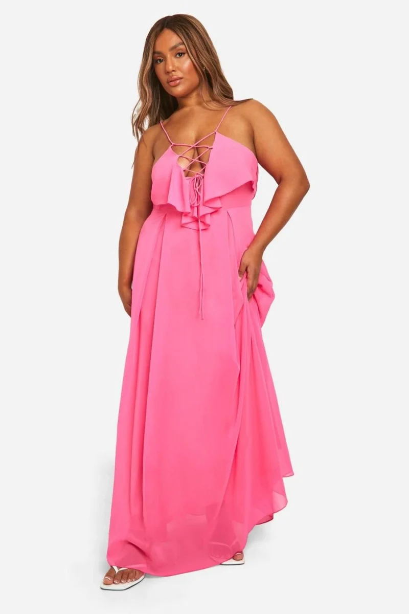 BOOHOO Plus Lace Up Ruffle Front Maxi Dress