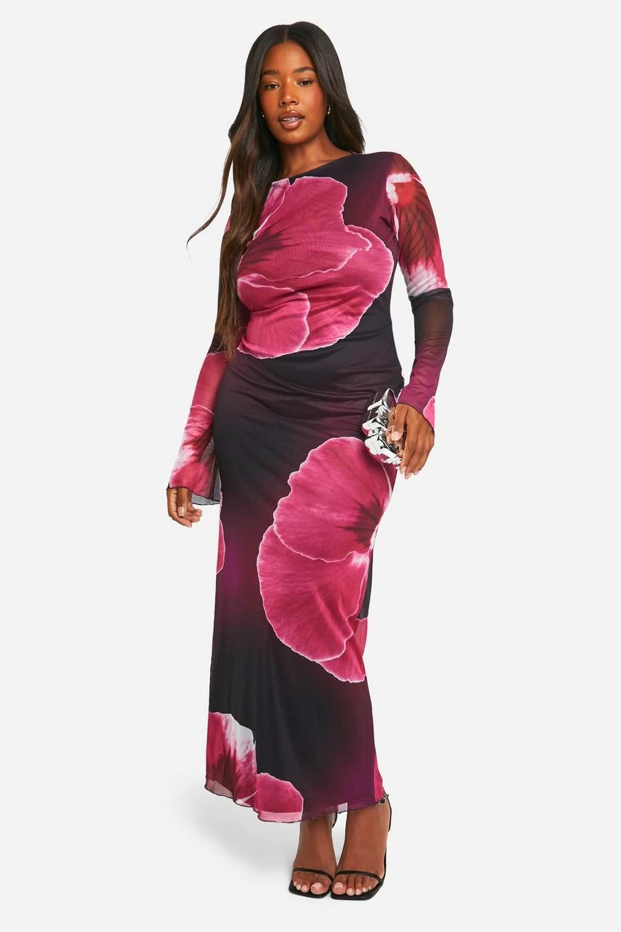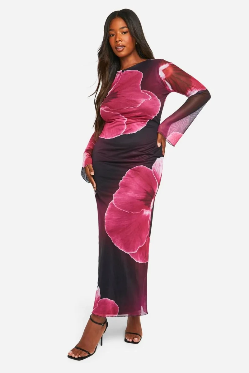 BOOHOO Plus Large Floral Low Back Maxi Dress
