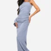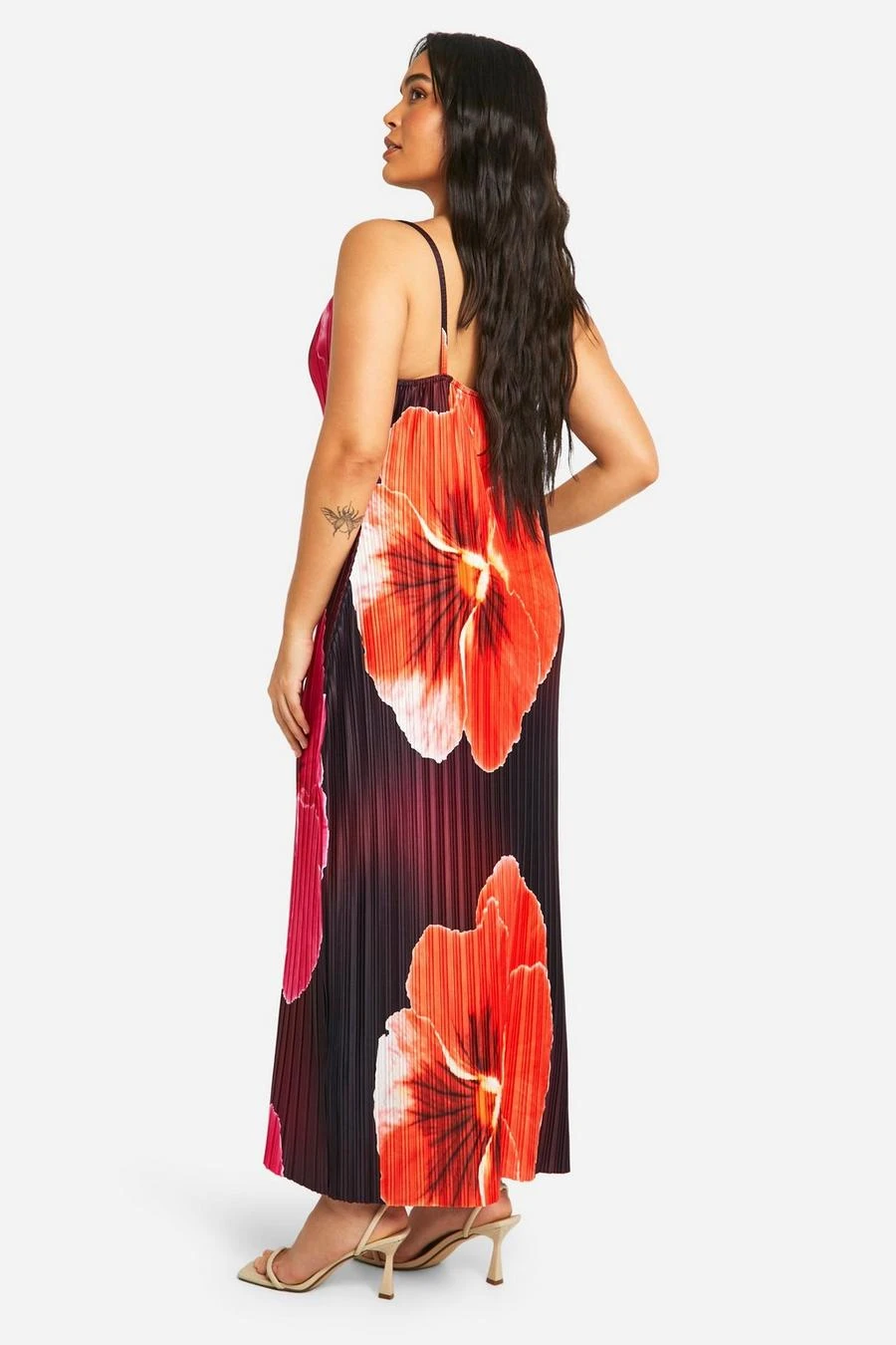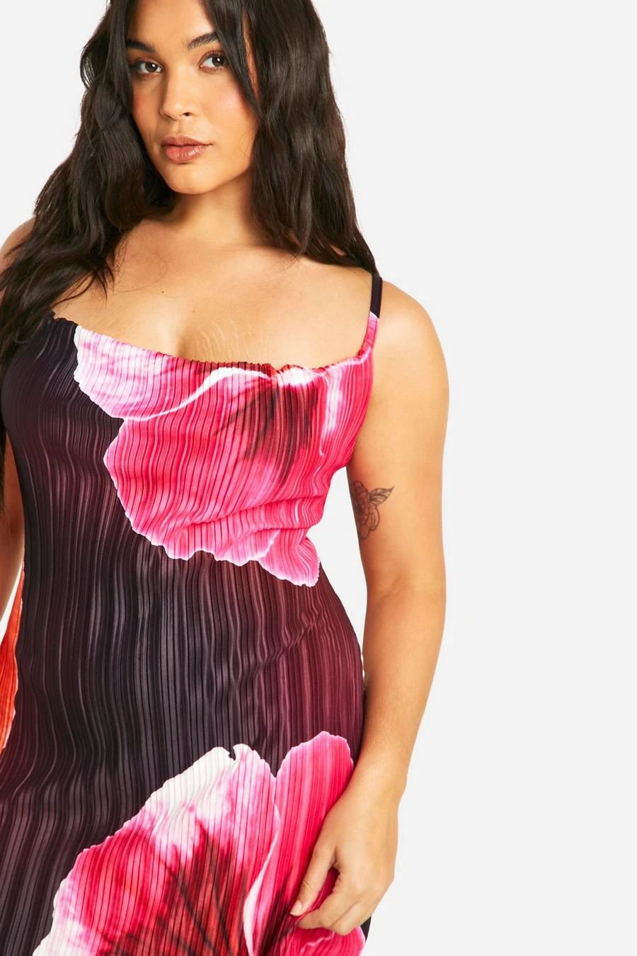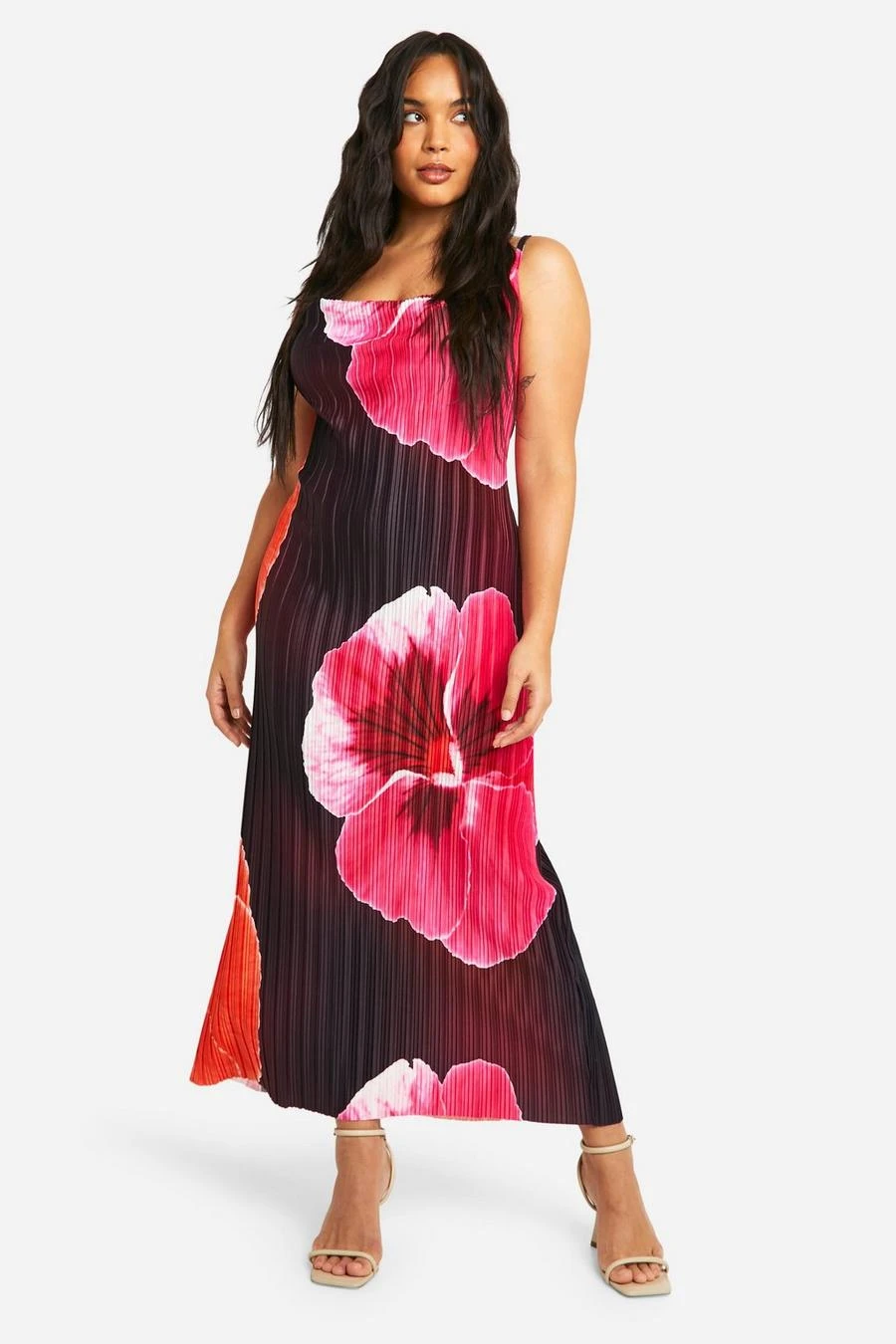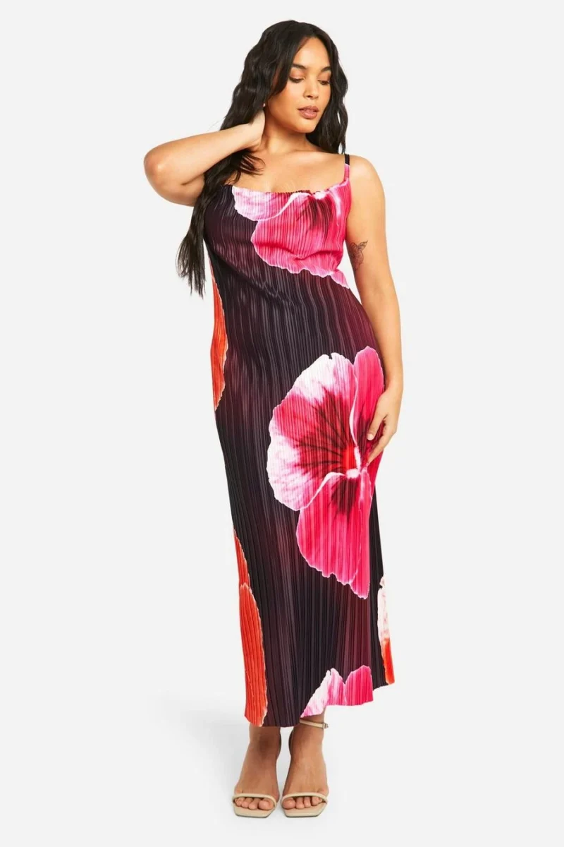 BOOHOO Plus Large Floral Print Cowl Neck Plisse Maxi Dress
