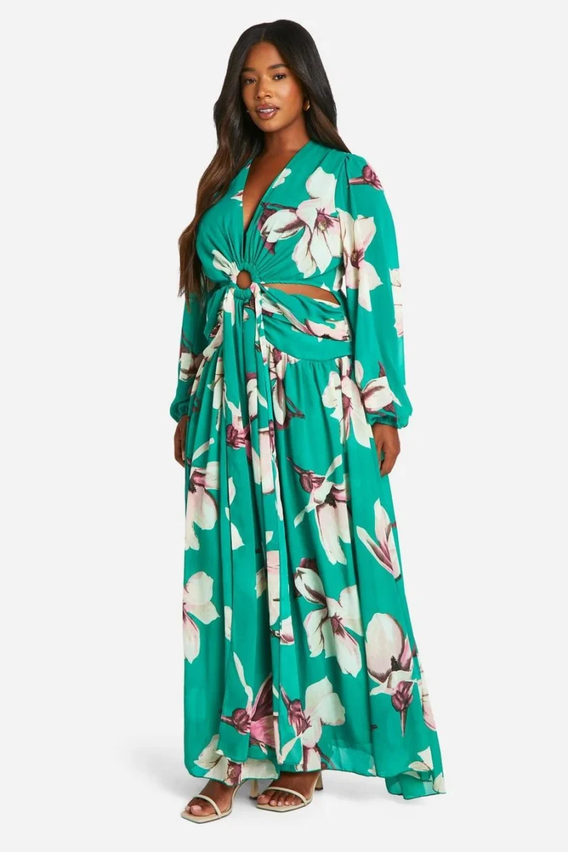 BOOHOO Plus Large Floral Print Cut Out Maxi Dress