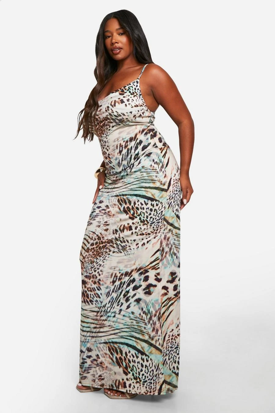 BOOHOO Plus Leopard Cowl Neck Slinky Maxi Dress