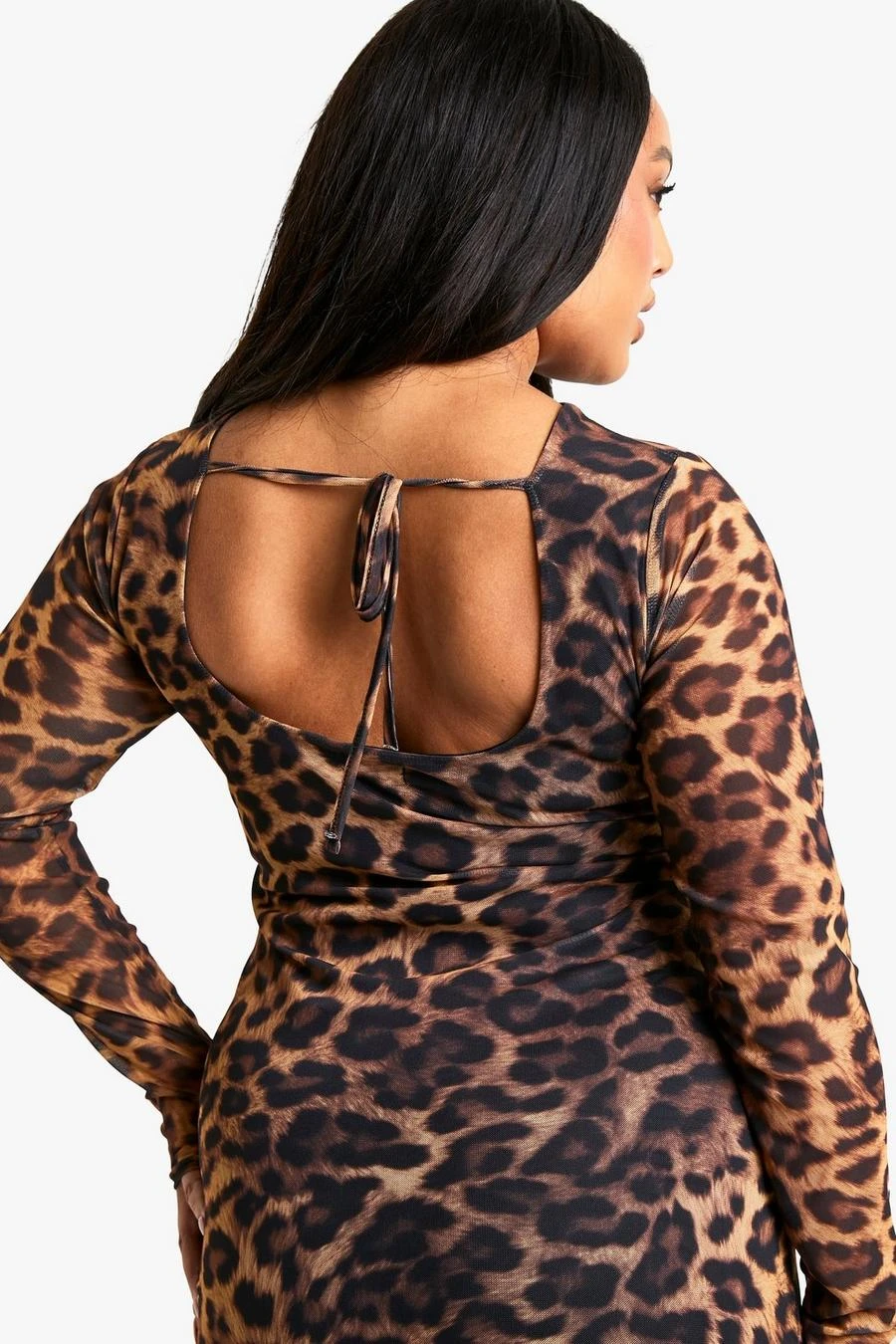 BOOHOO Plus Leopard Printed Backless Long Sleeve Maxi Dress