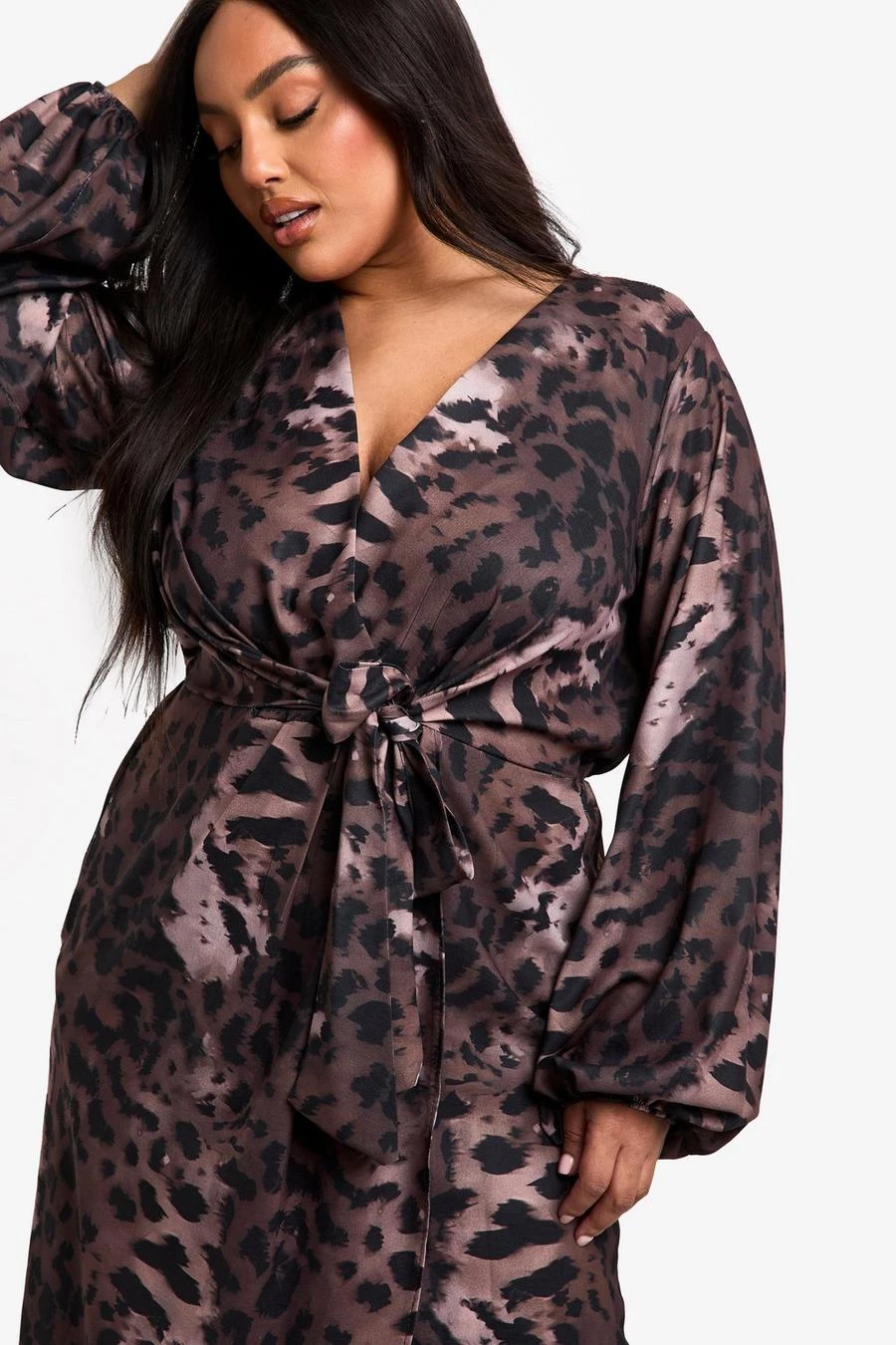 BOOHOO Plus Leopard Tie Detail Maxi Dress