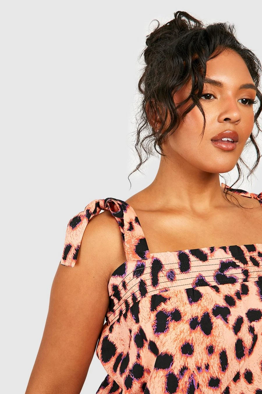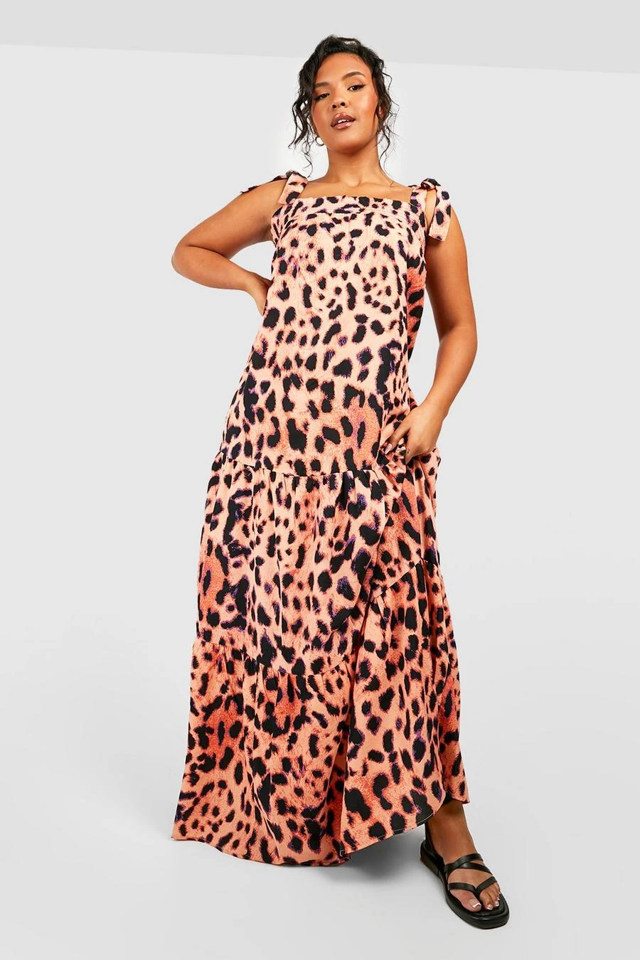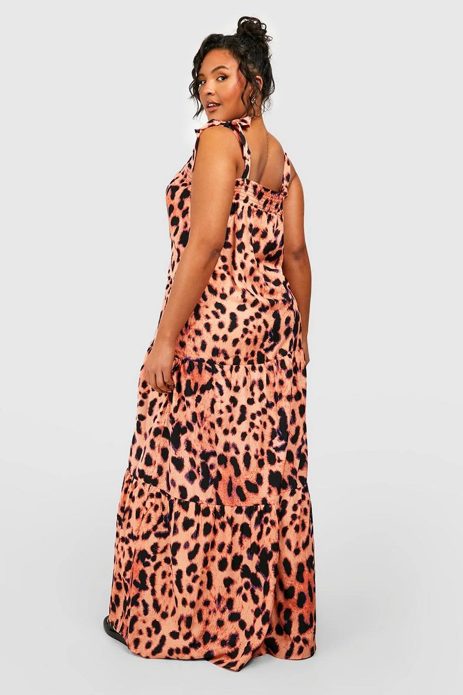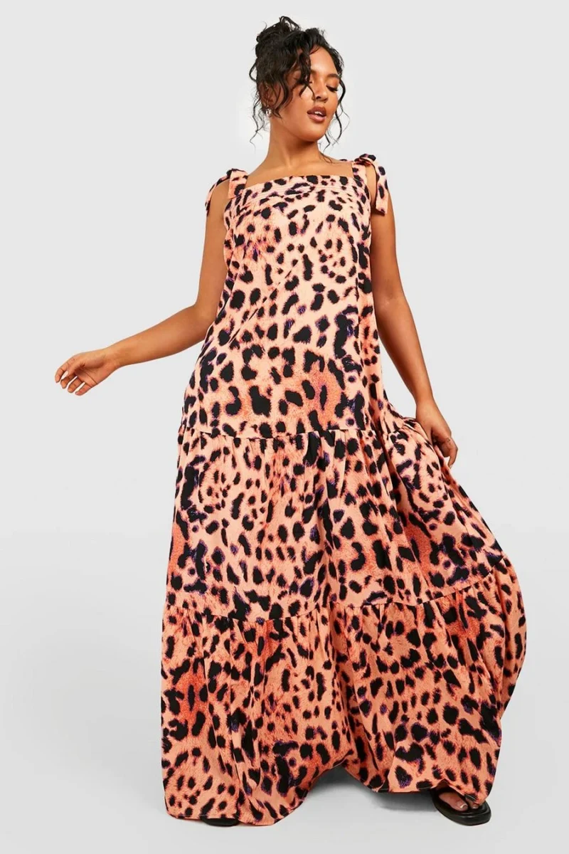 BOOHOO Plus Leopard Tie Detail Tiered Maxi Dress