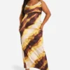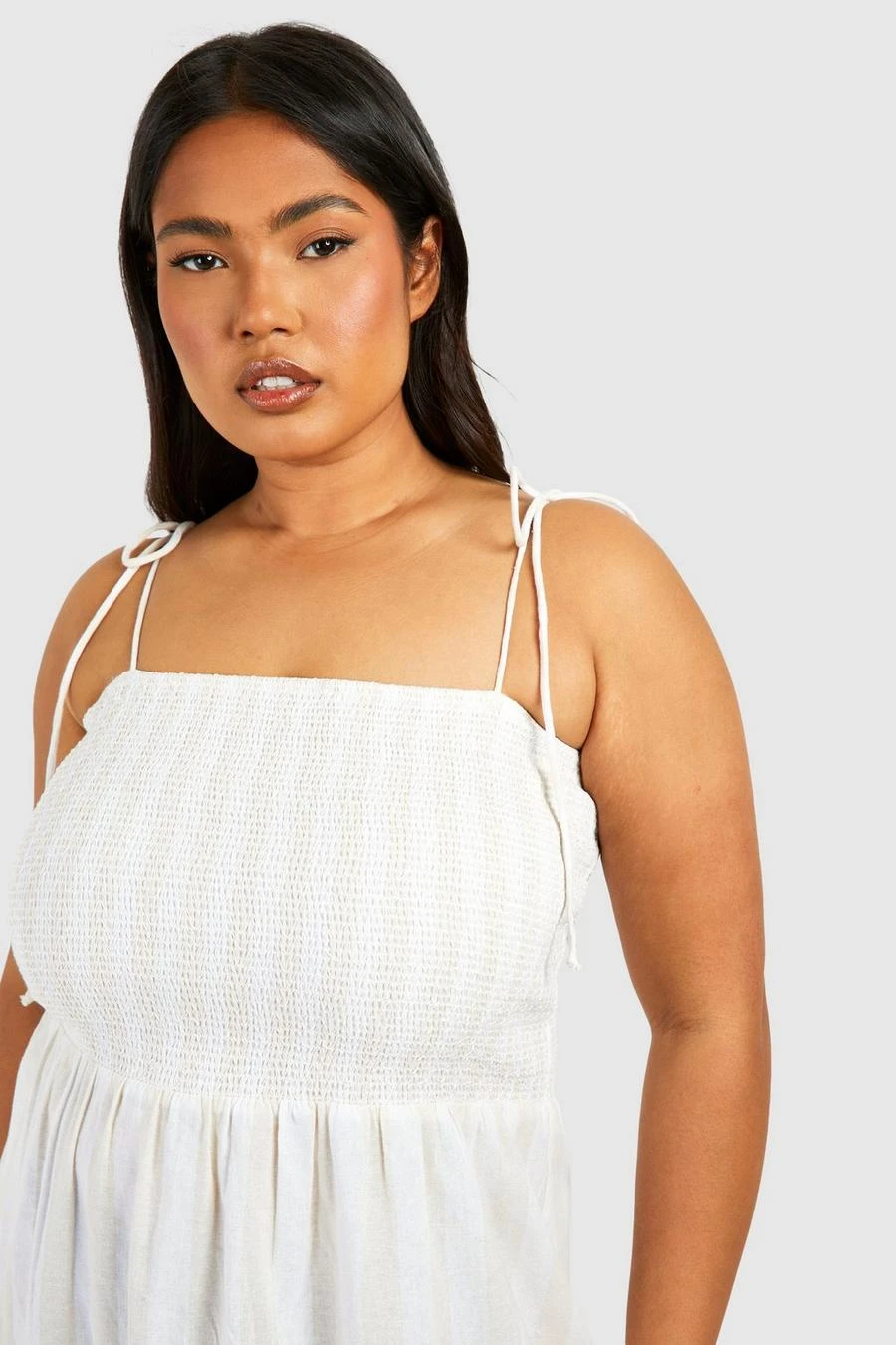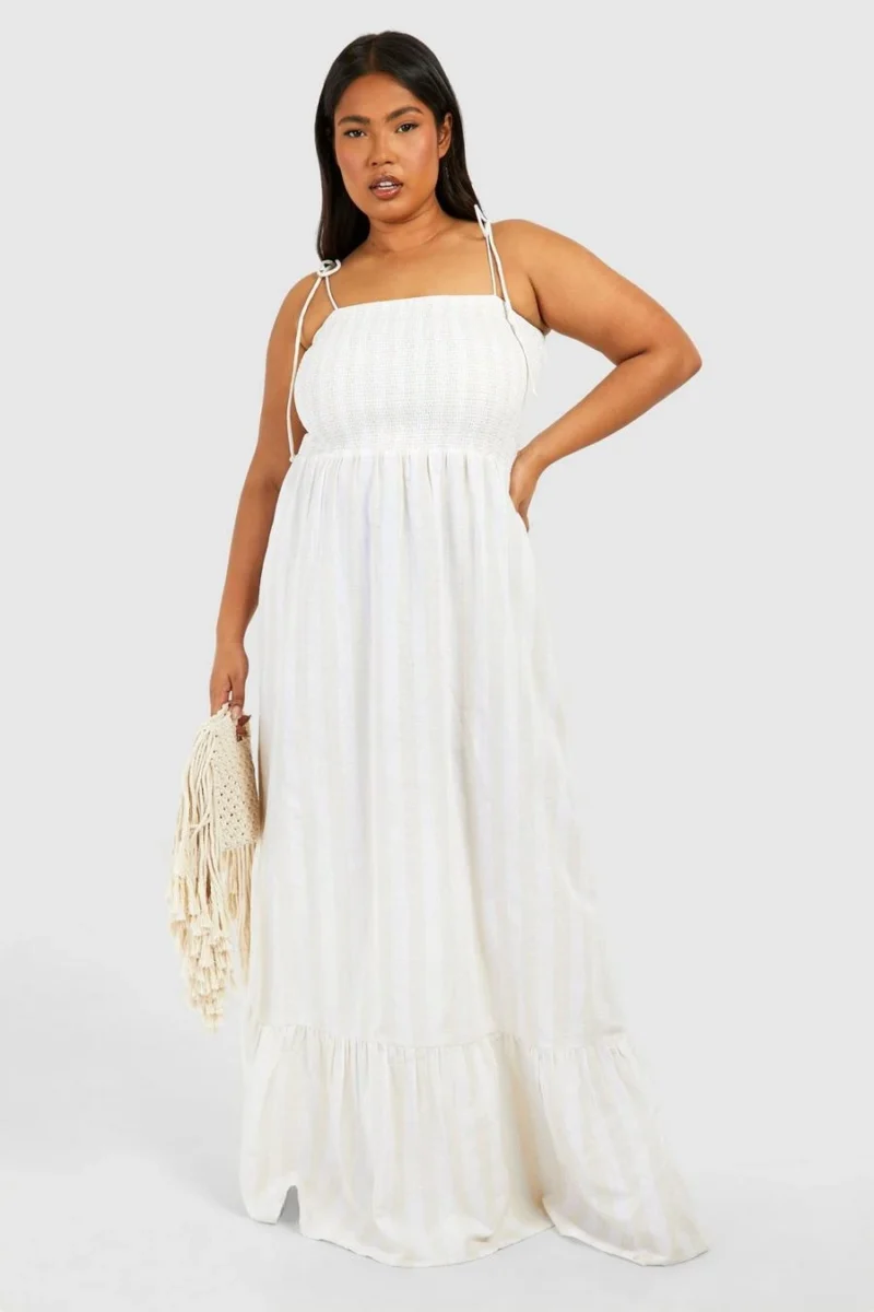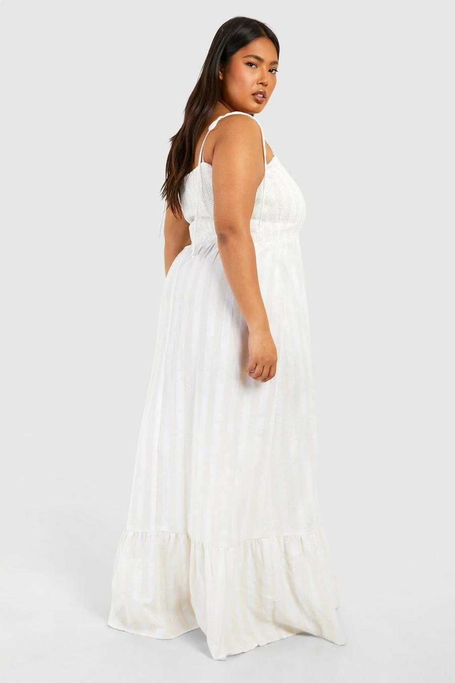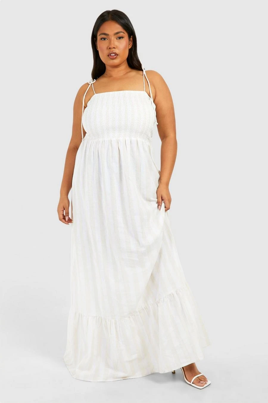 BOOHOO Plus Linen Look Shirred Stripe Bandeau Maxi Dress