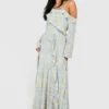 BOOHOO Plus Mesh Rose Floral Tie Cowl Neck Maxi Dress
