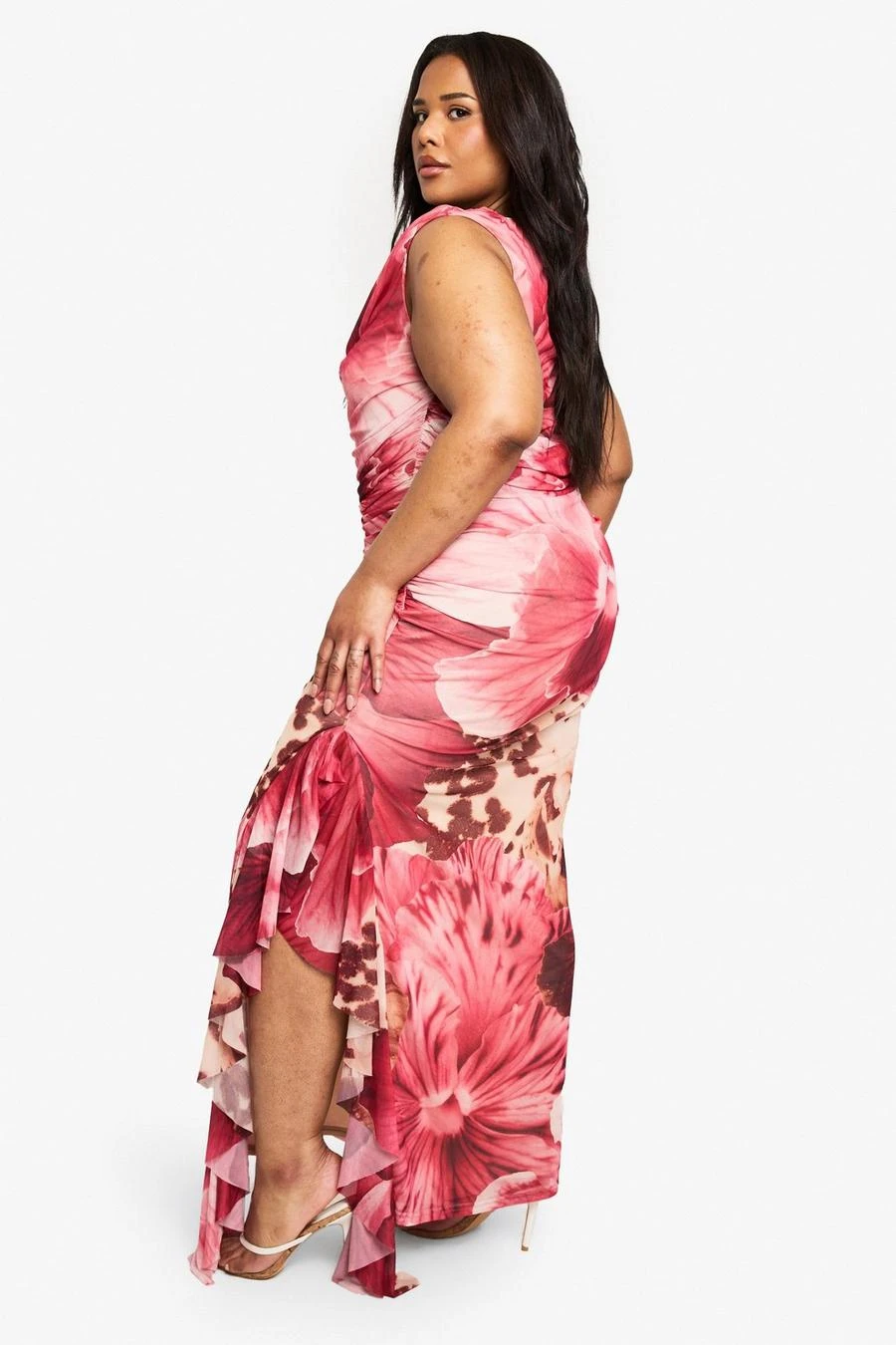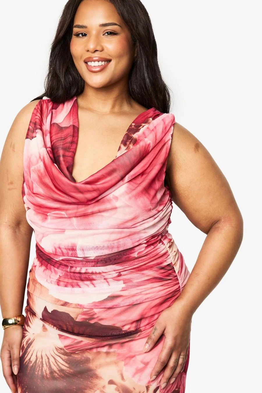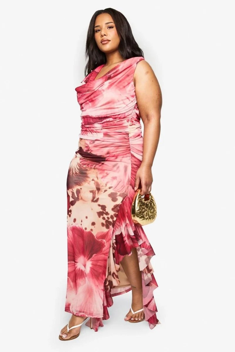 BOOHOO Plus Mixed Print Mesh Draped Maxi Dress