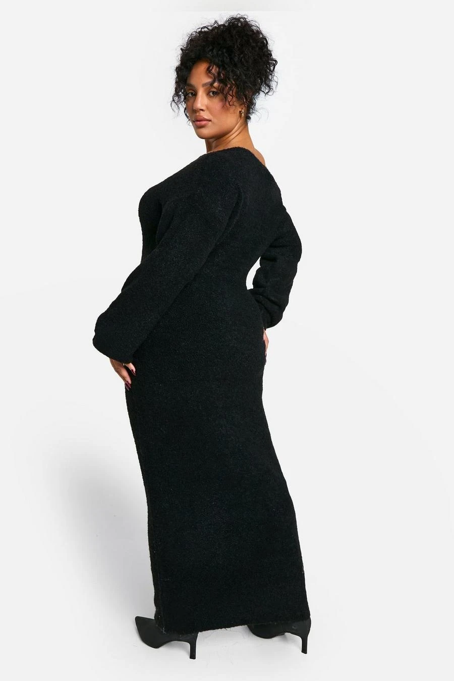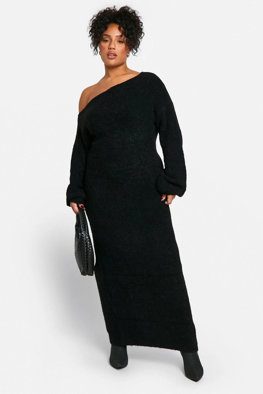 BOOHOO Plus Off The Shoulder Borg Knitted Maxi Dress