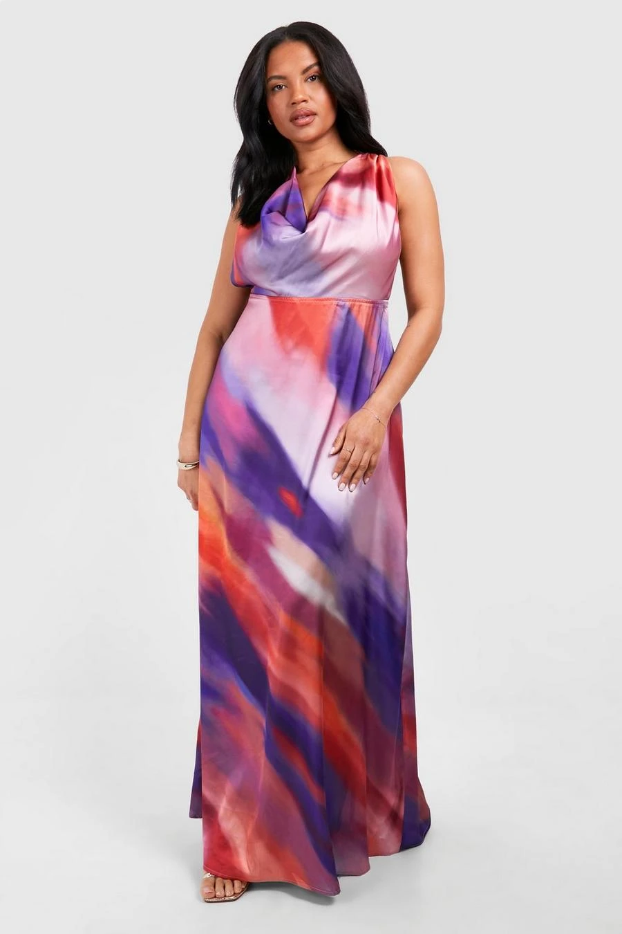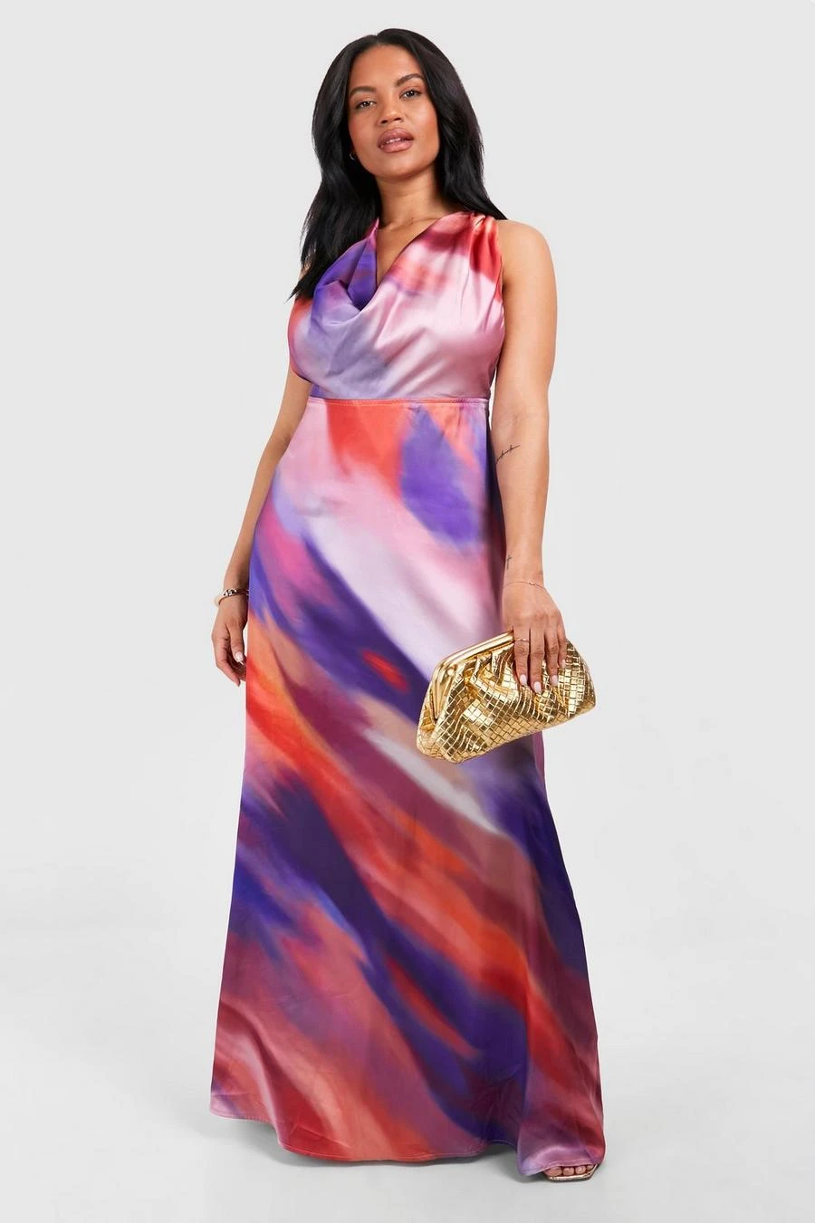 BOOHOO Plus Ombre Satin Cowl Maxi Dress