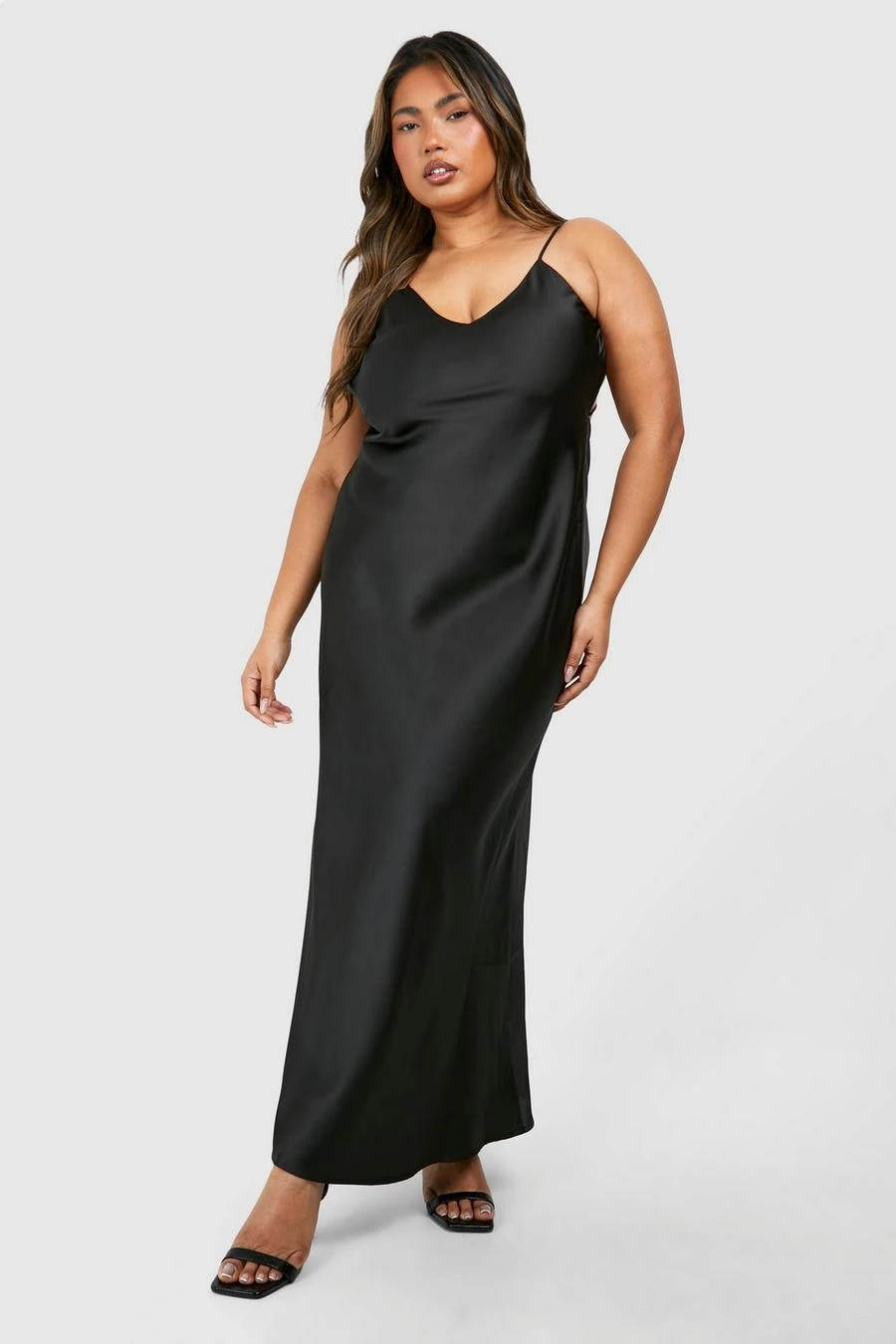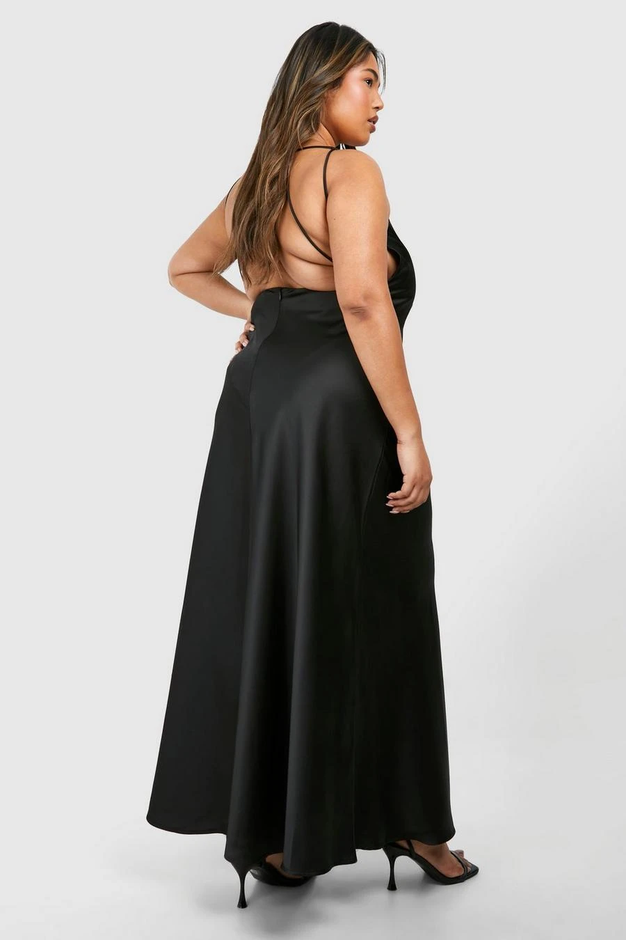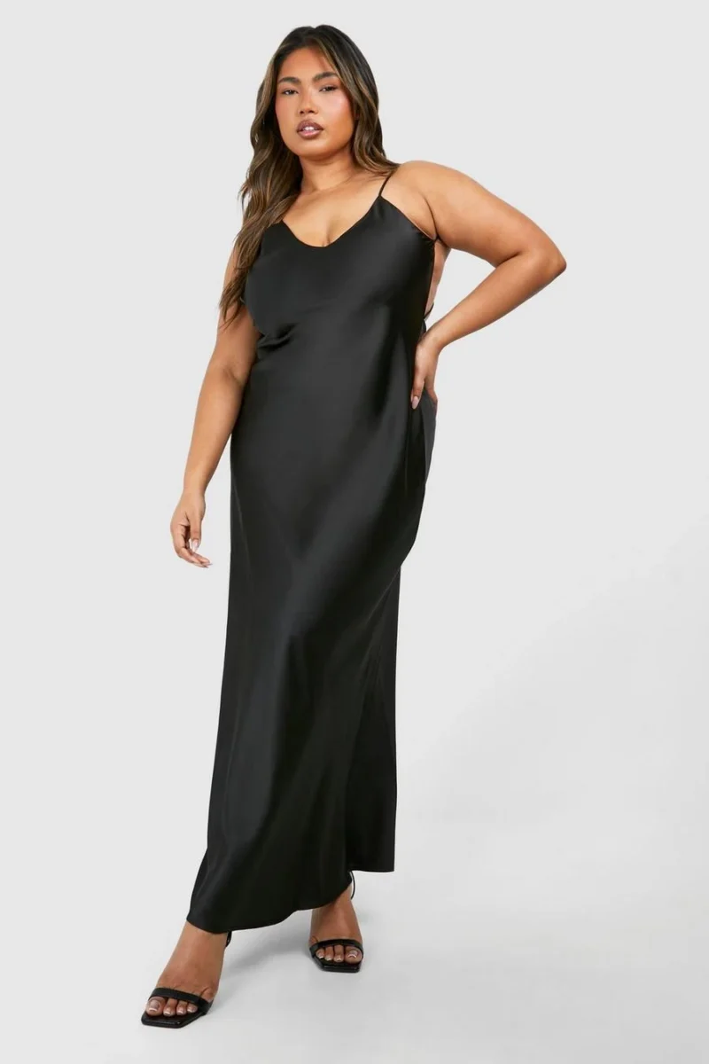 BOOHOO Plus Open Back Detail Satin Maxi Dress