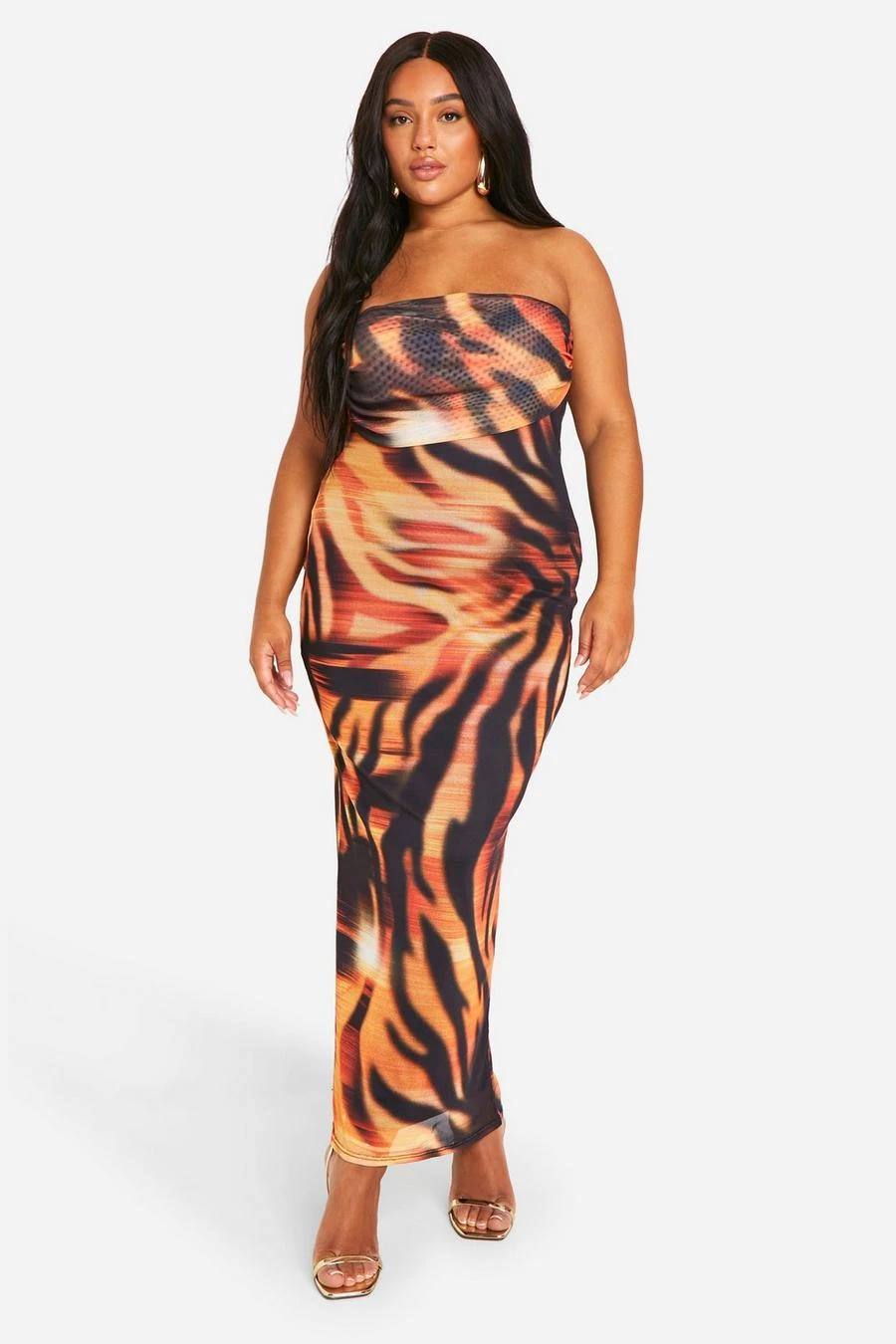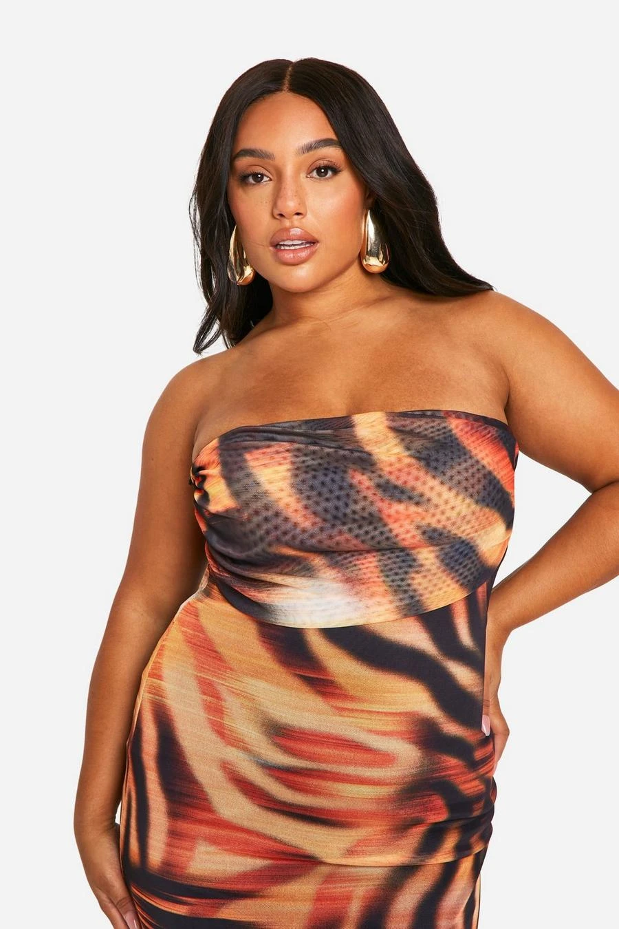 BOOHOO Plus Printed Bandeau Midaxi Dress