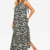 BOOHOO Plus Printed Low Back Column Maxi Dress