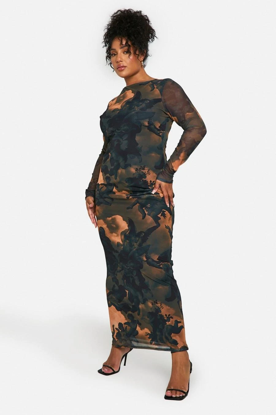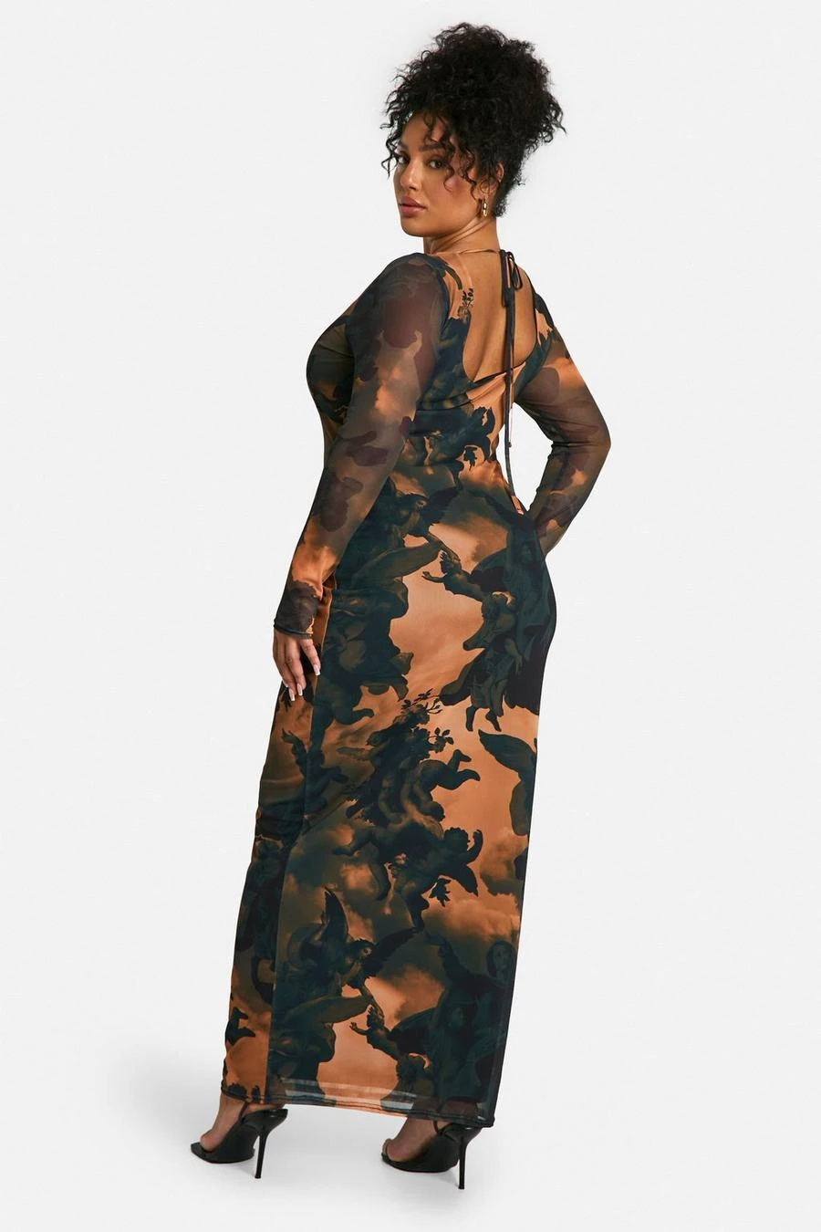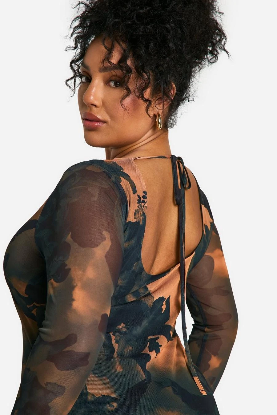 BOOHOO Plus Printed Mesh Low Back Maxi Dress