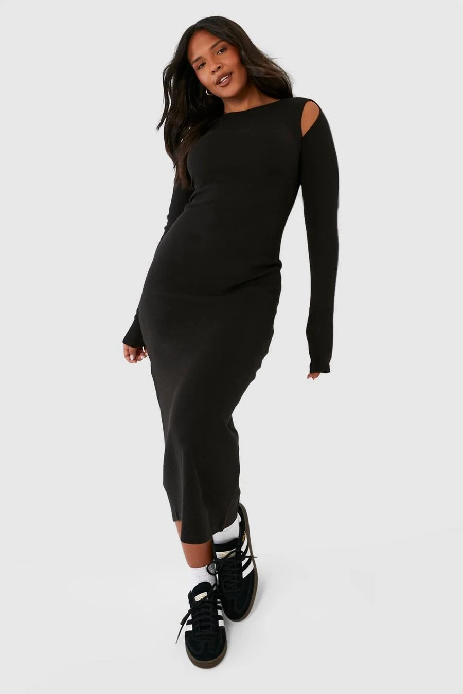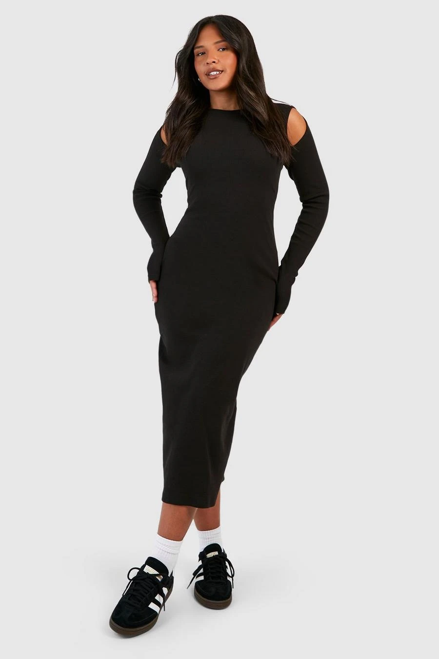 BOOHOO Plus Ribbed Cut Out Detail Midi Dress