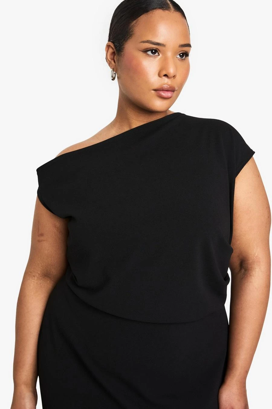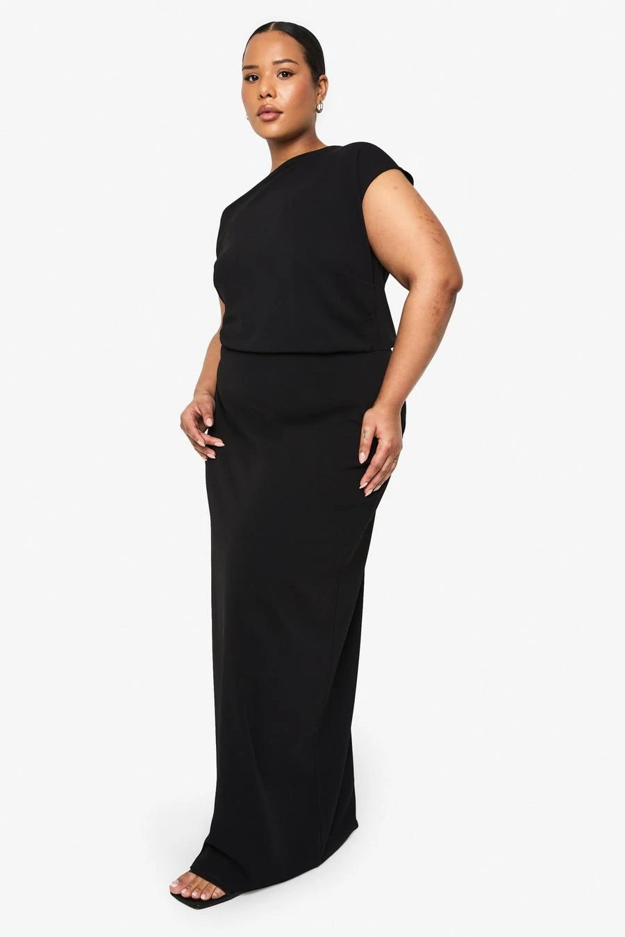BOOHOO PLUS ROUCHED ASYMMETRIC MAXI DRESS