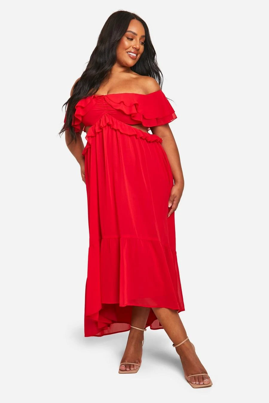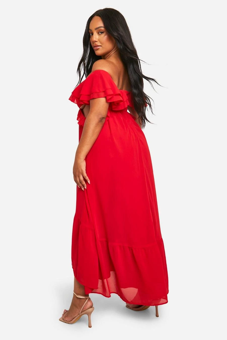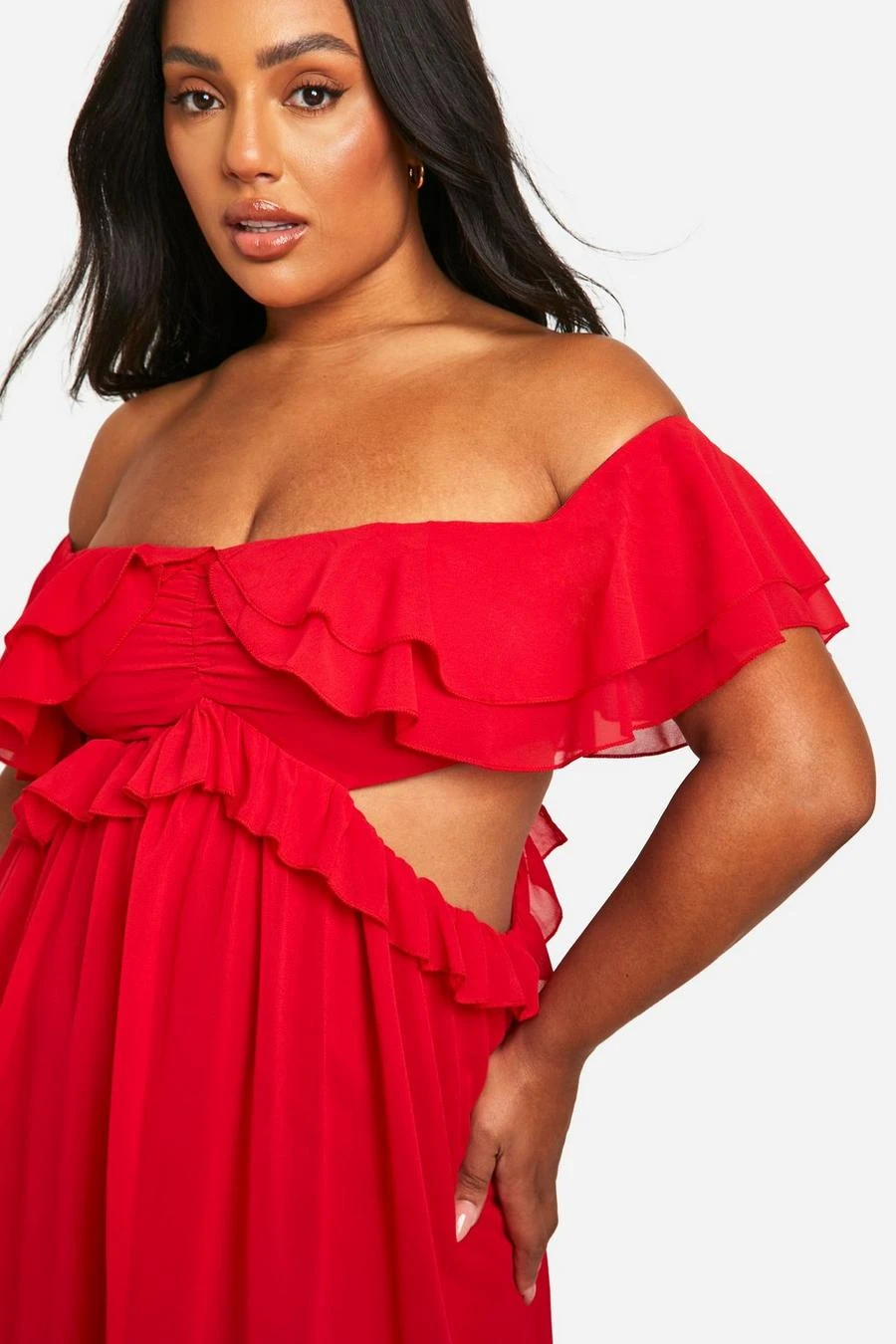 BOOHOO Plus Ruffle Cold Shoulder Maxi Dress