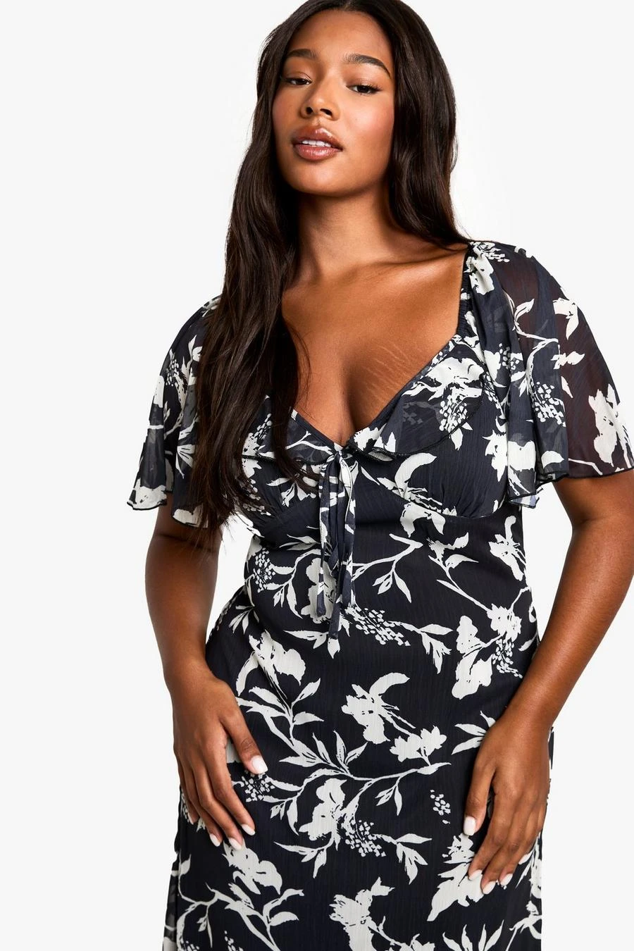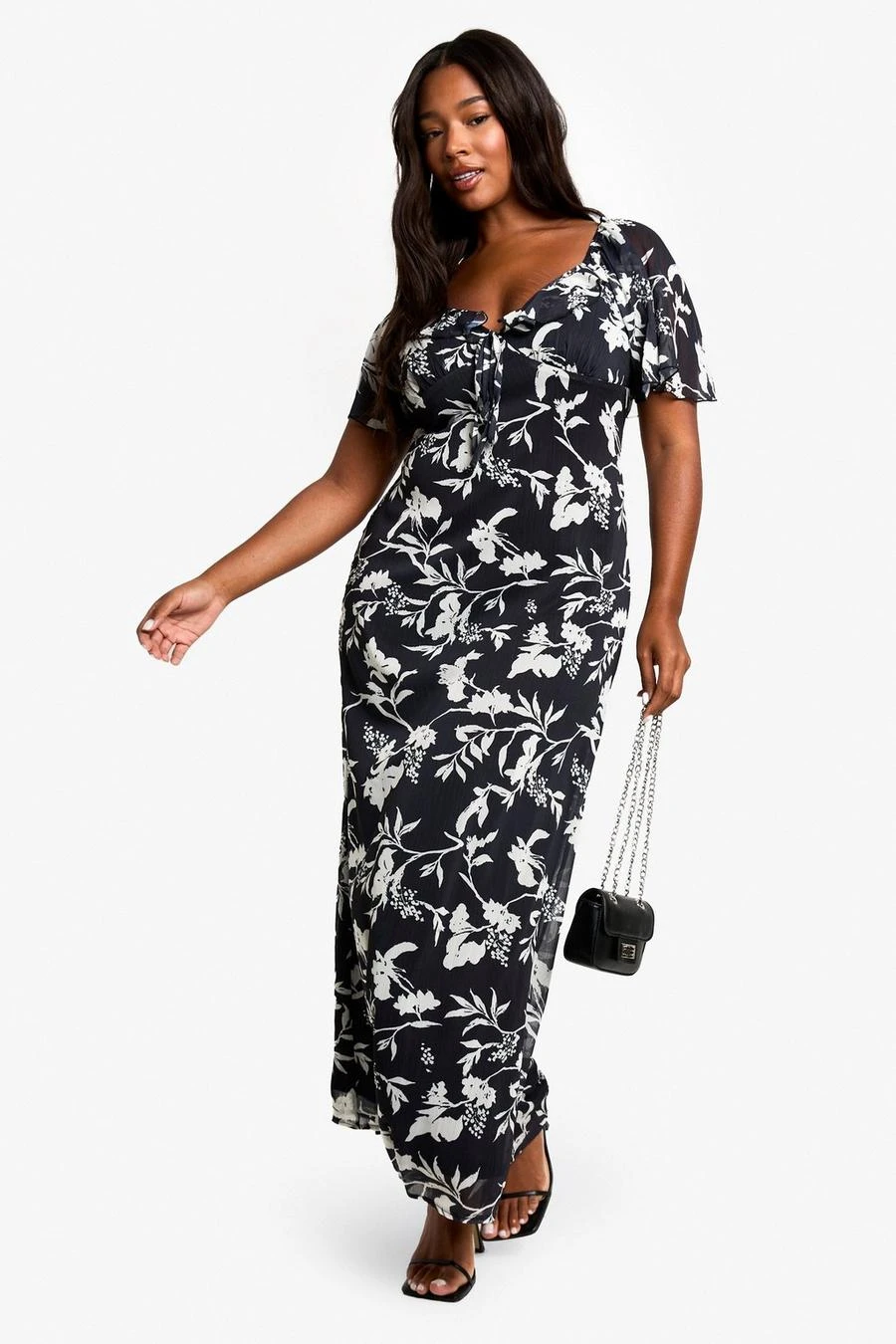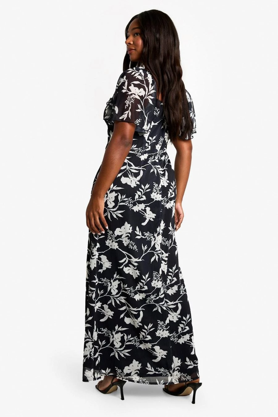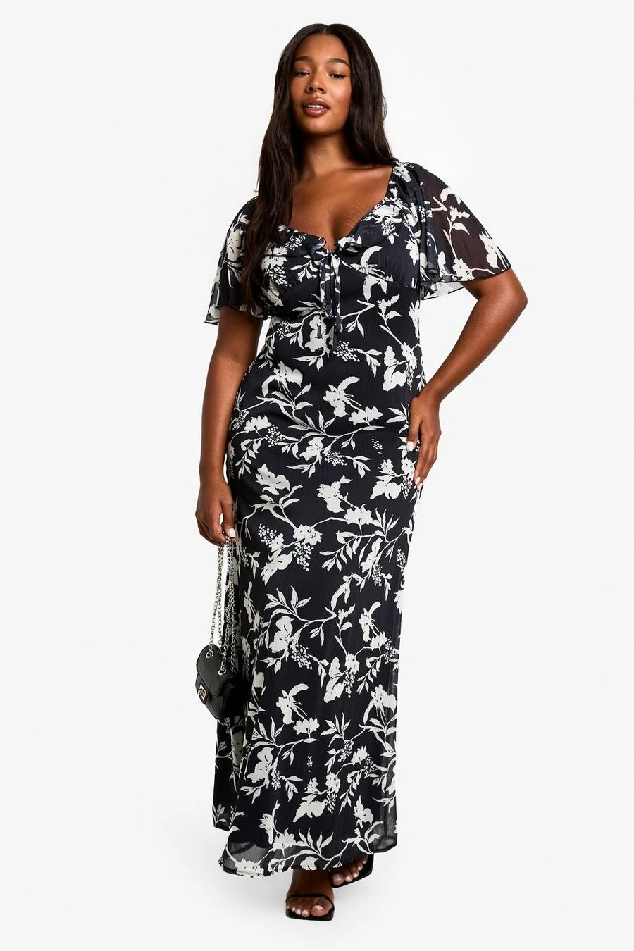 BOOHOO PLUS RUFFLE DETAIL SHORT SLEEVE PRINTED MAXI DRESS