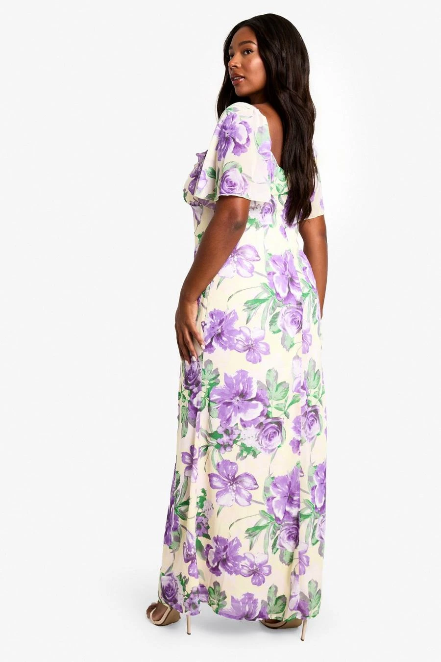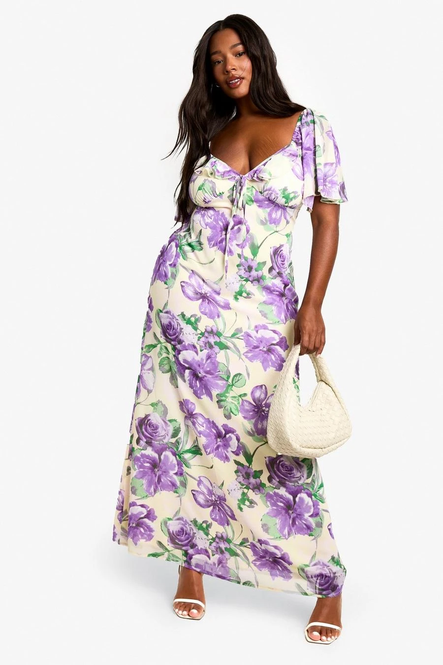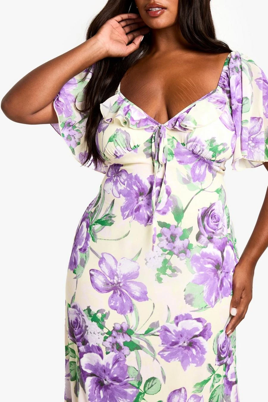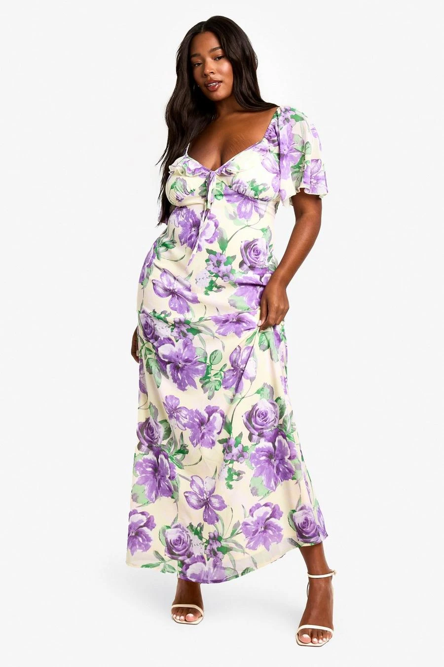 BOOHOO PLUS RUFFLE PRINTED FLORAL DETAIL SHORT SLEEVE PRINTED MAXI DRESS