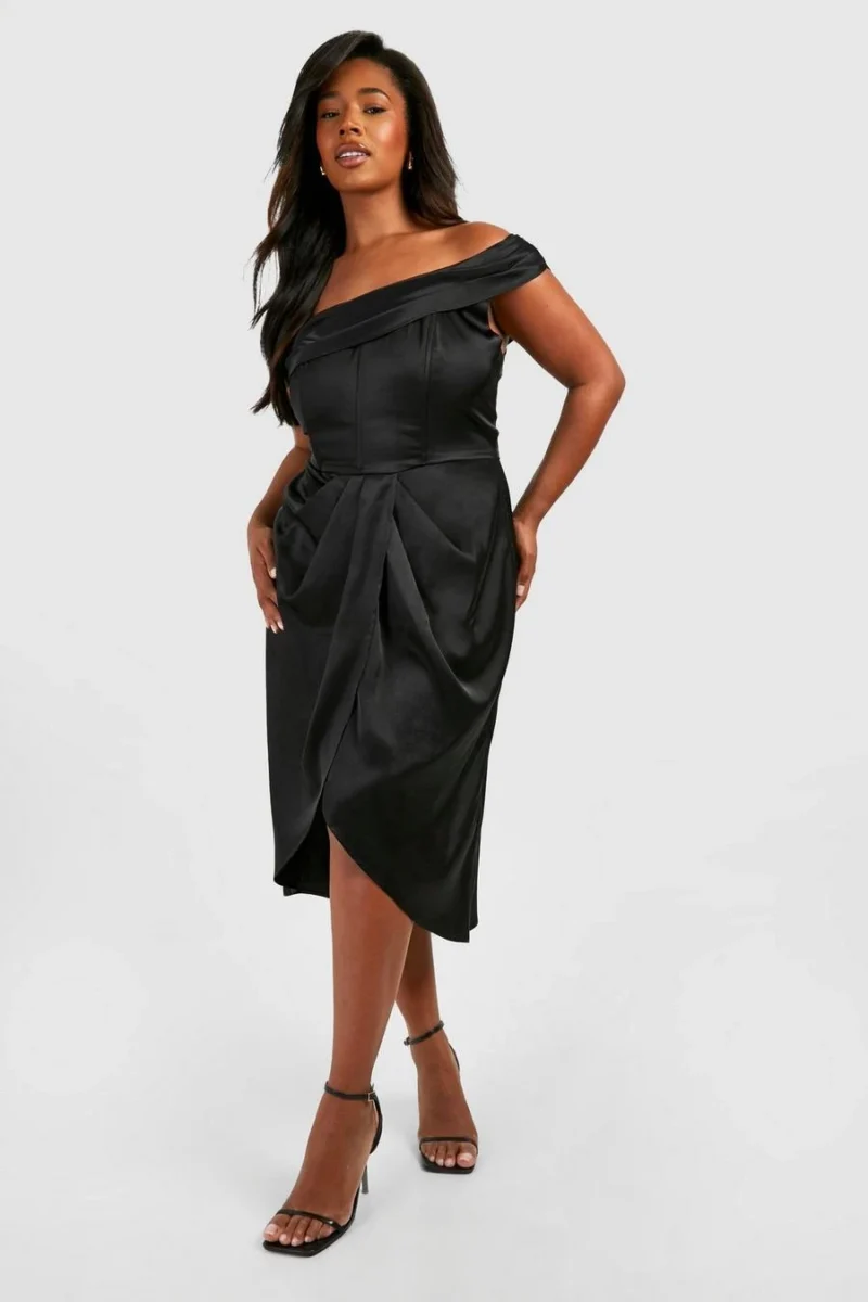 BOOHOO Plus Satin Corset Shoulder Wrap Midi Dress