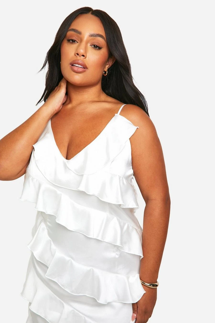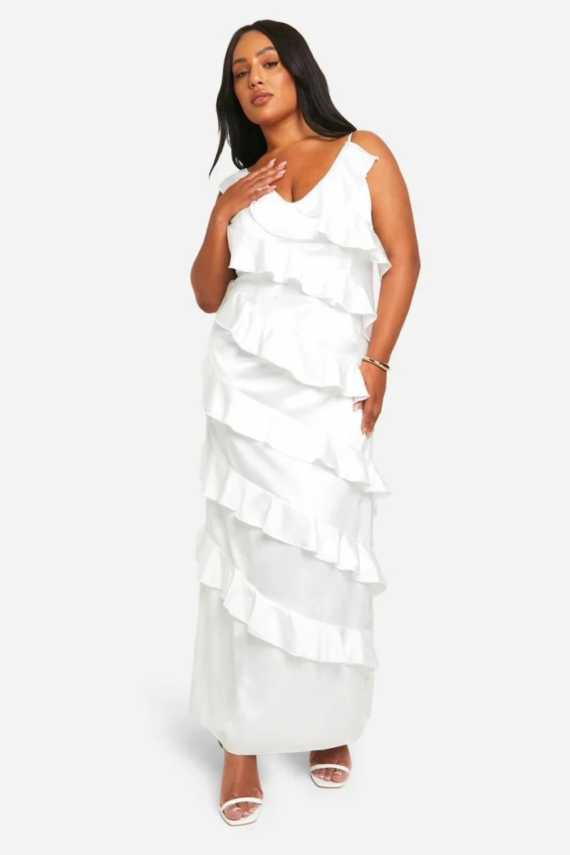 BOOHOO Plus Satin Ruffle Asymmetric Maxi Dress
