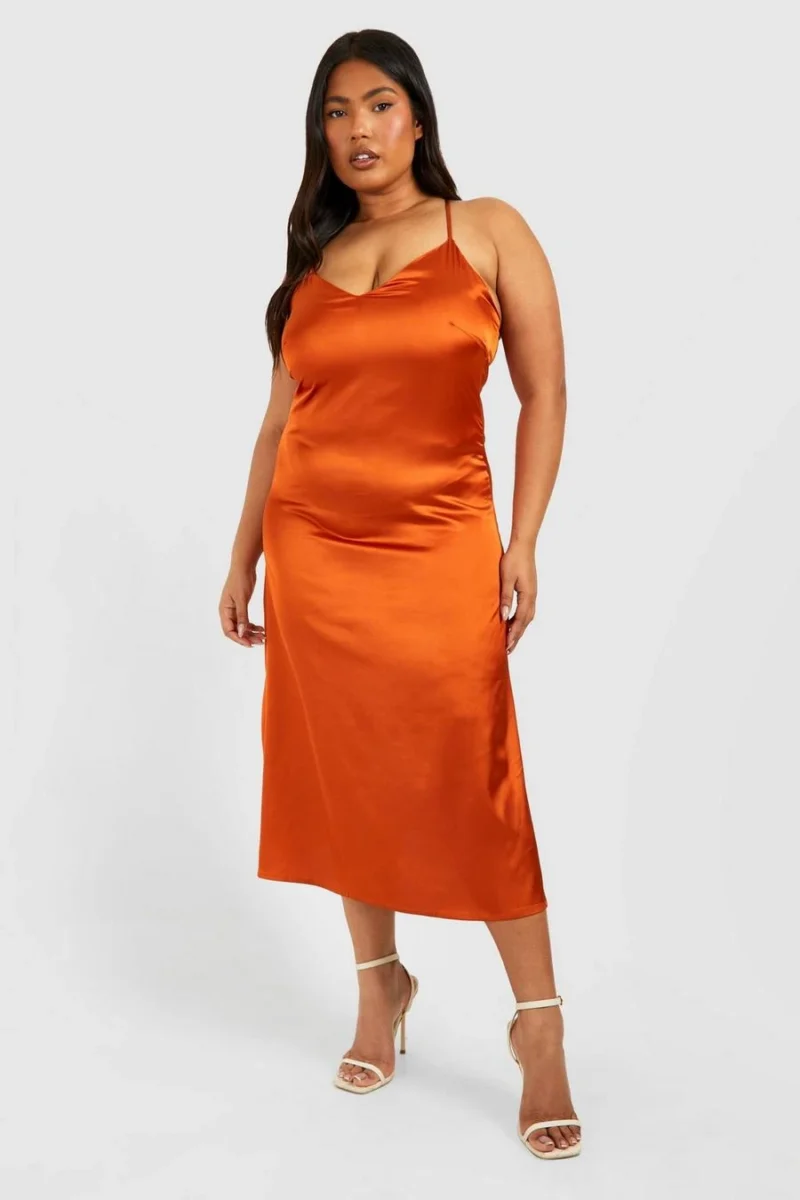 BOOHOO Plus Satin V Neck Split Midi Dress