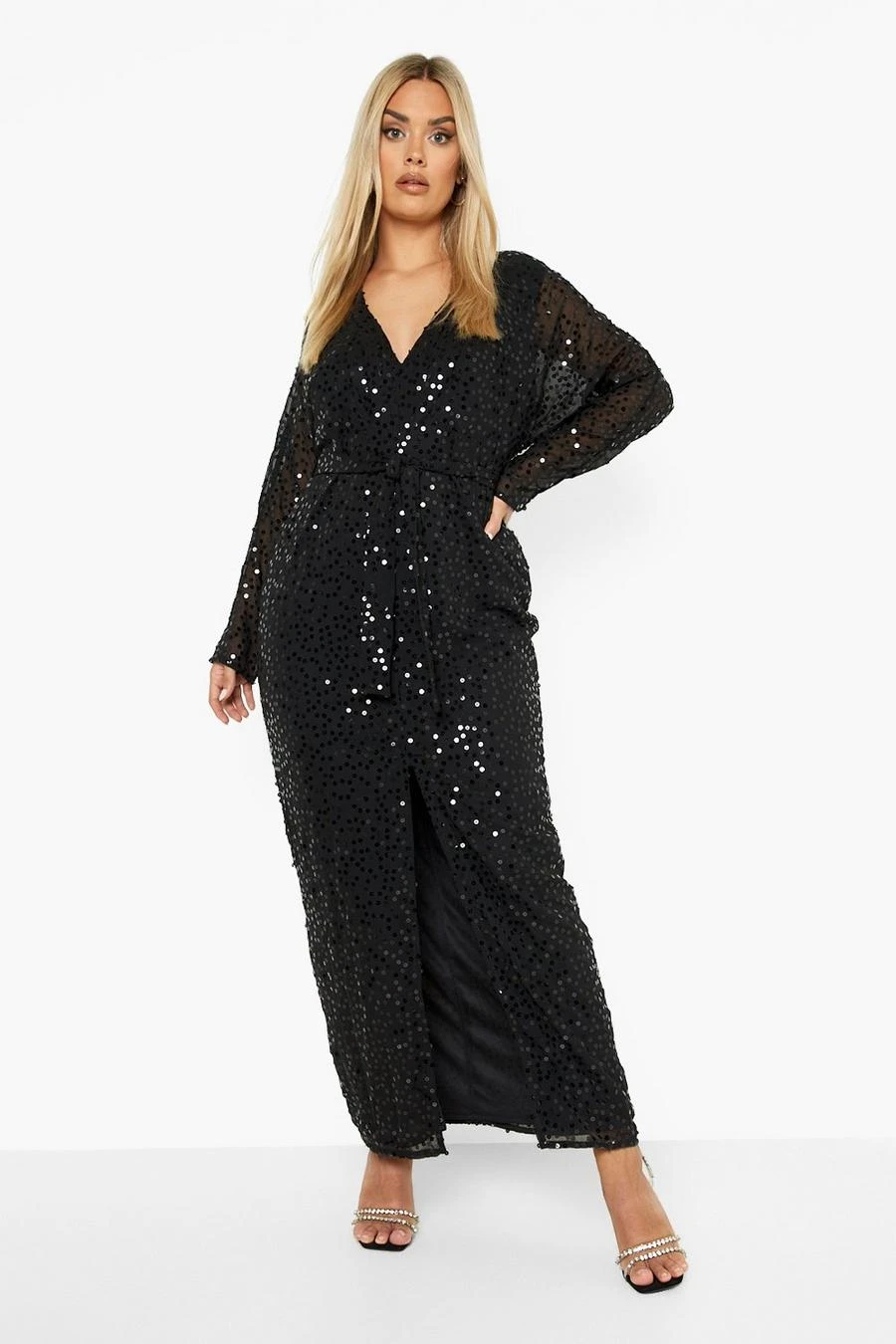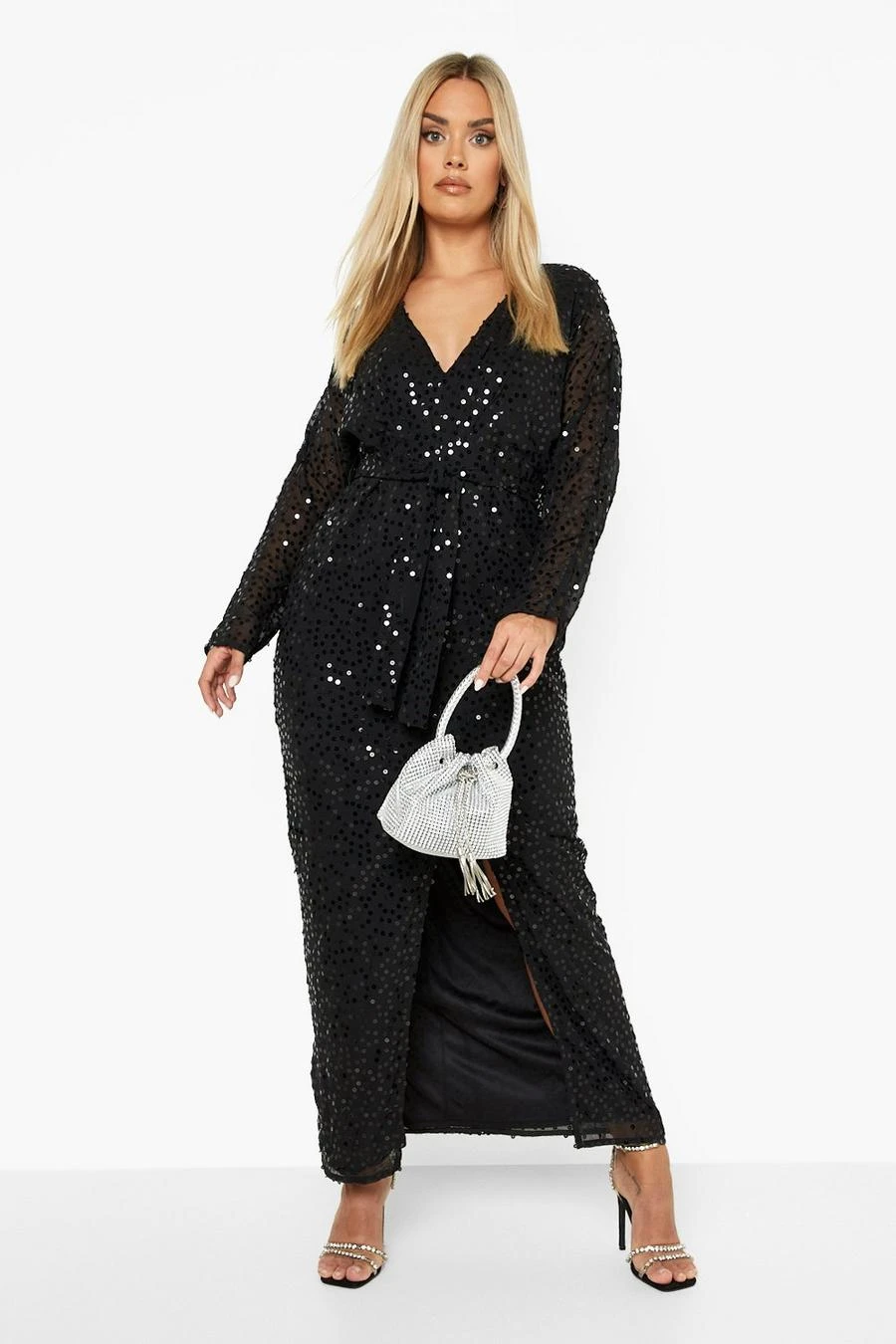 BOOHOO Plus Sequin Split Maxi Dress