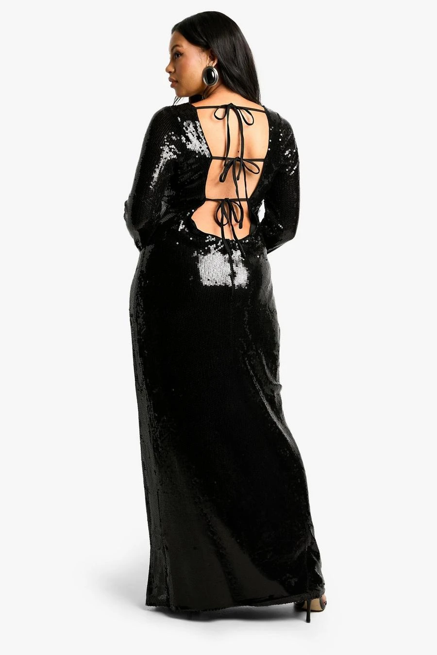 BOOHOO Plus Sequin Tie Back Maxi Column Dress