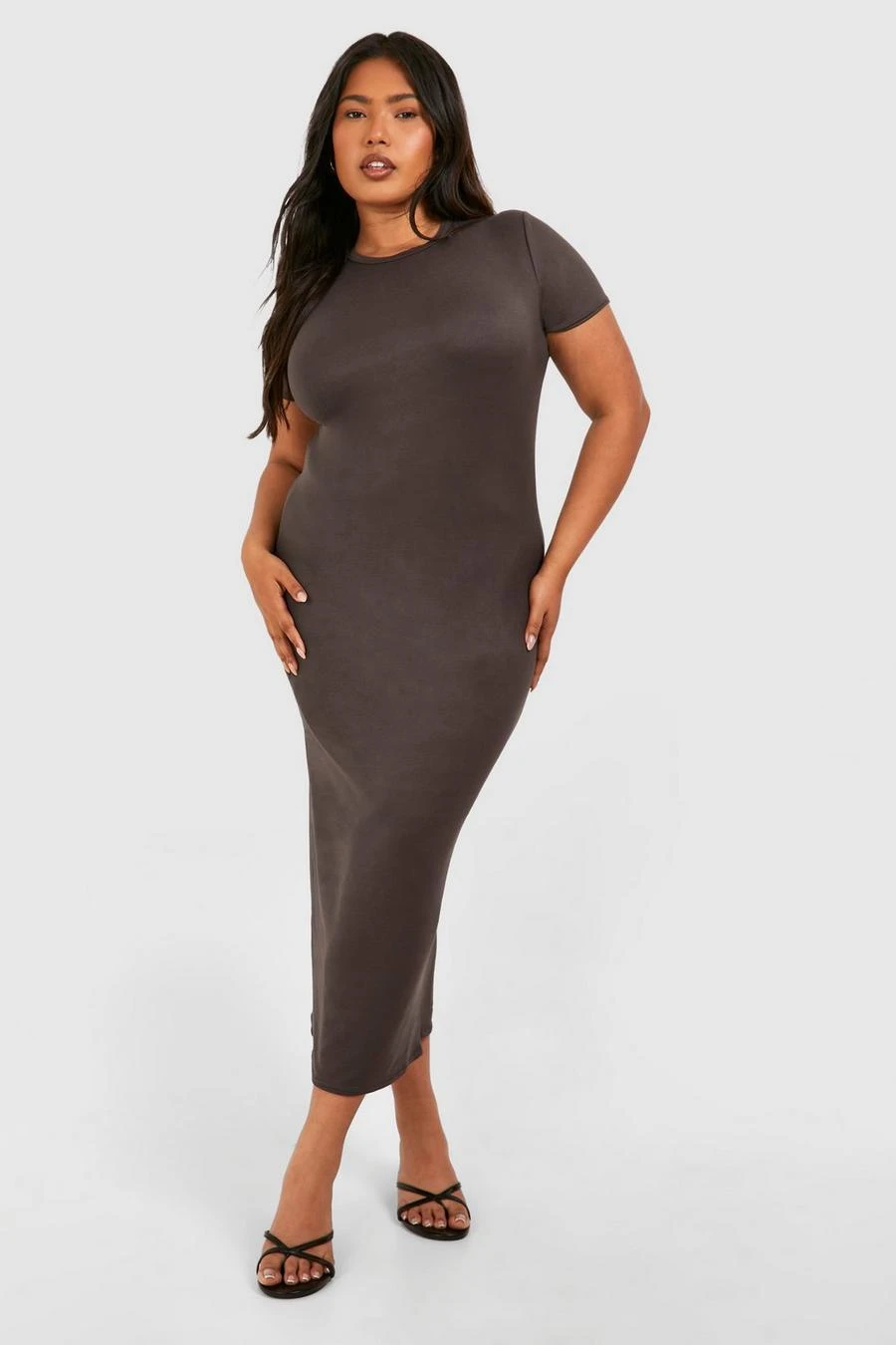 BOOHOO Plus Short Sleeve Longline Midi T-shirt Dress