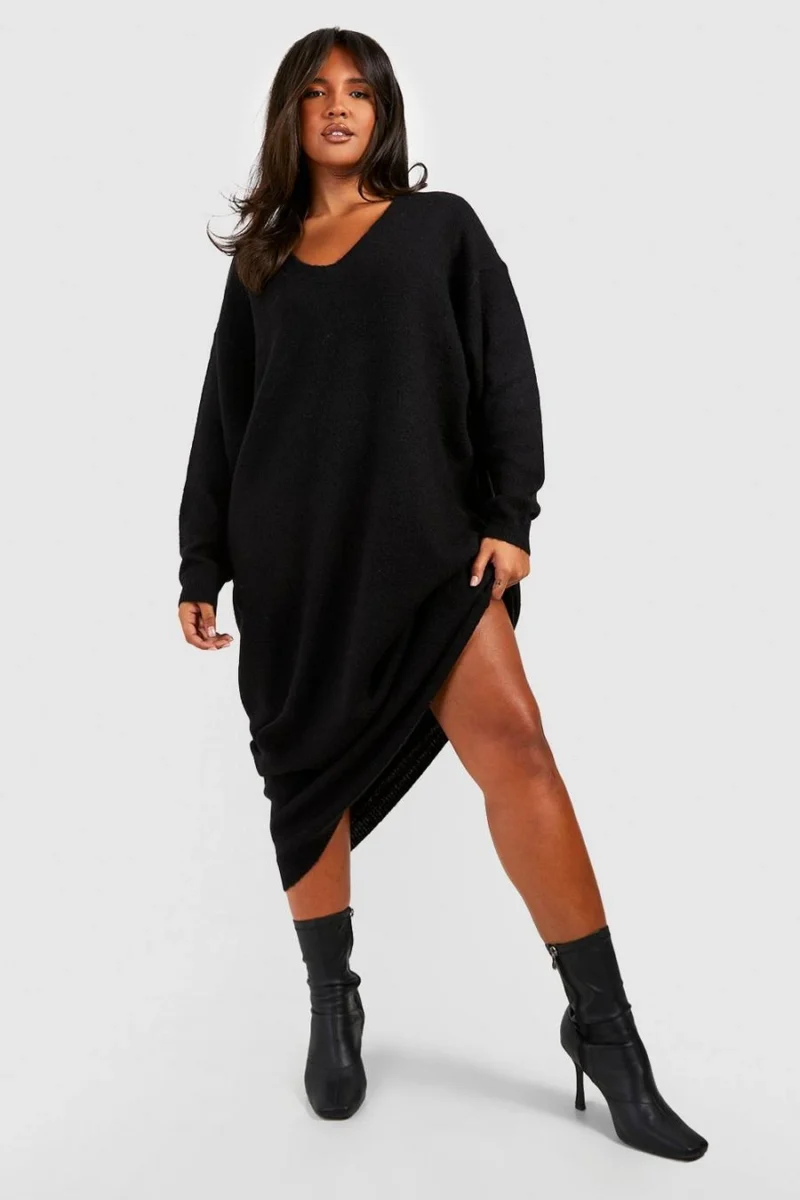 BOOHOO Plus Slouchy Soft Knit Maxi Knitted Dress