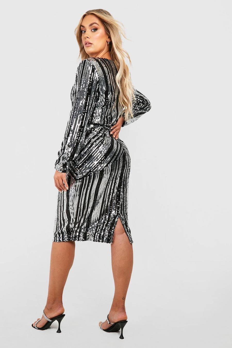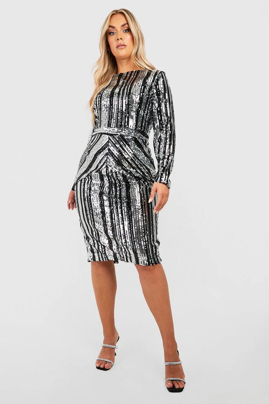 BOOHOO Plus Stripe Sequin Midi Dress