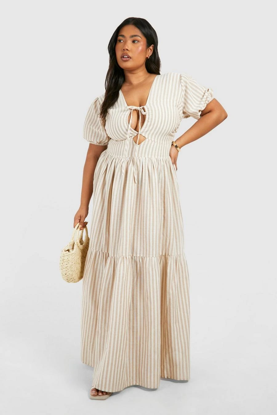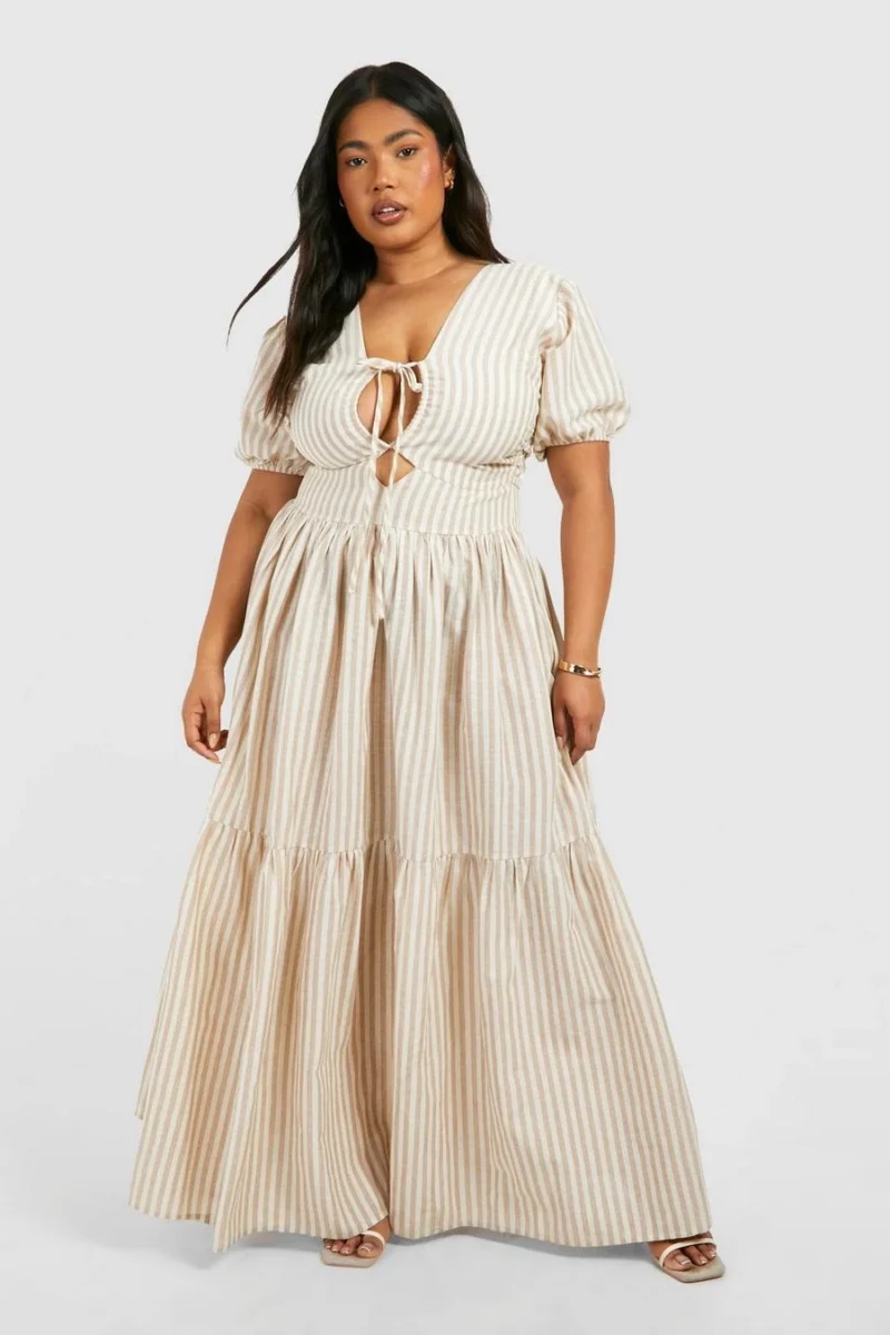BOOHOO Plus Stripe Tiered Maxi Dress