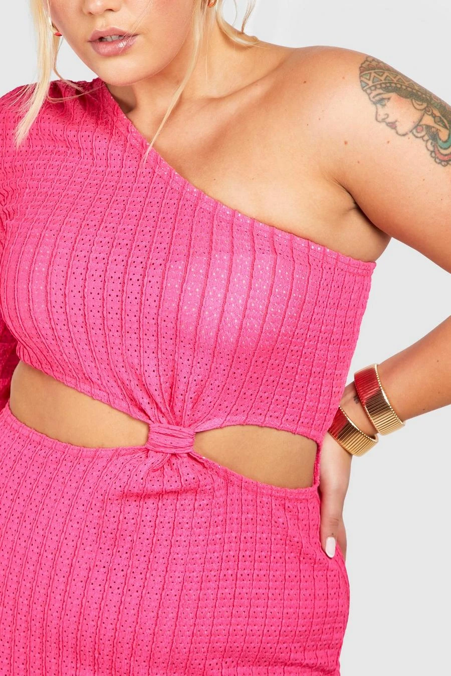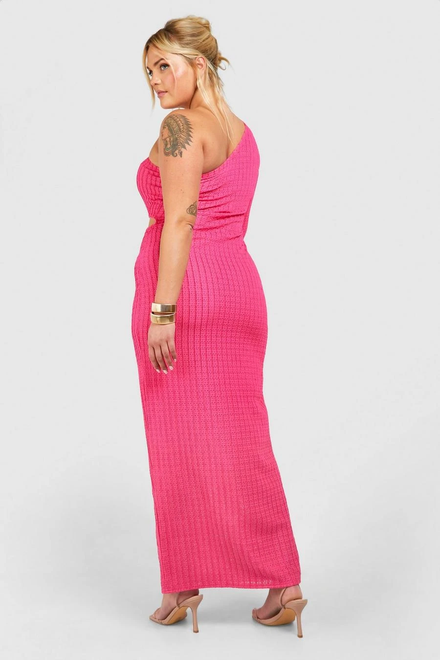 BOOHOO Plus Textured Cut Out One Shoulder Maxi Dress