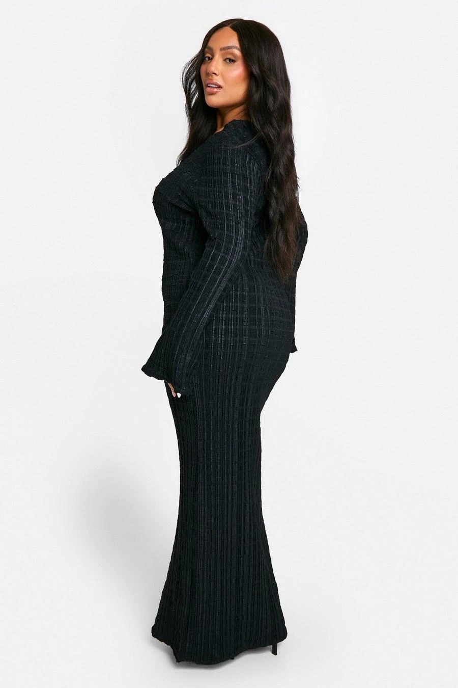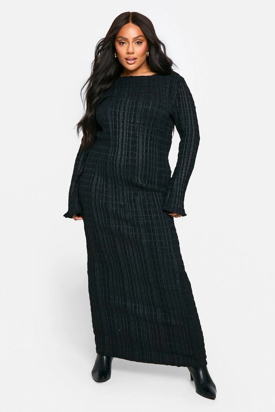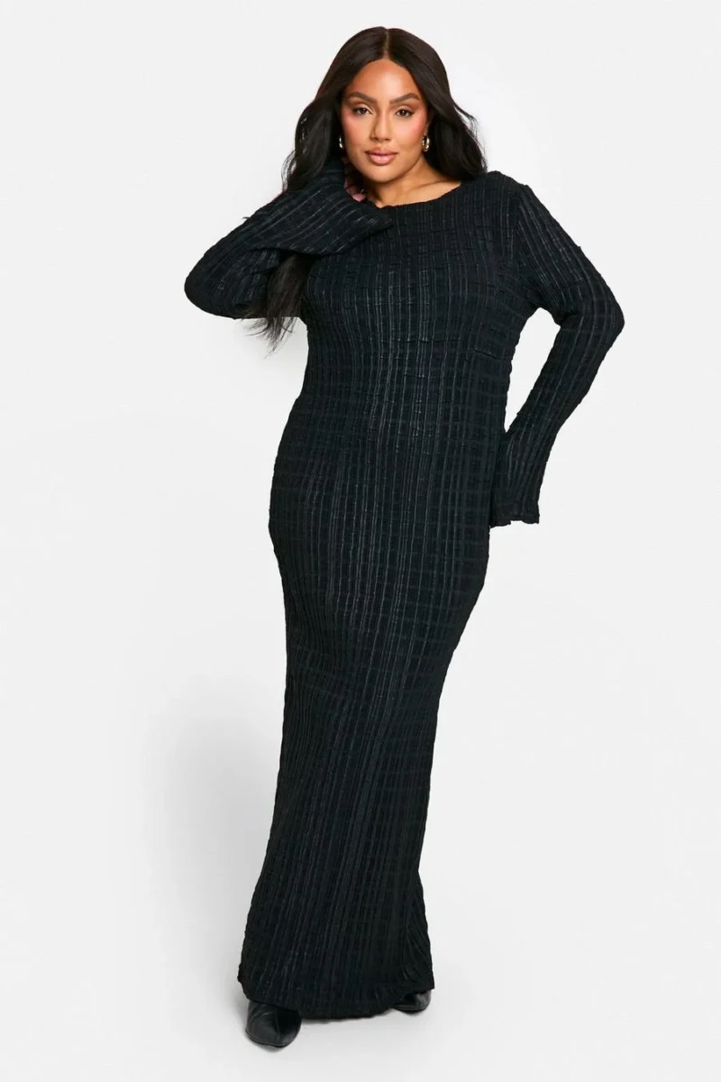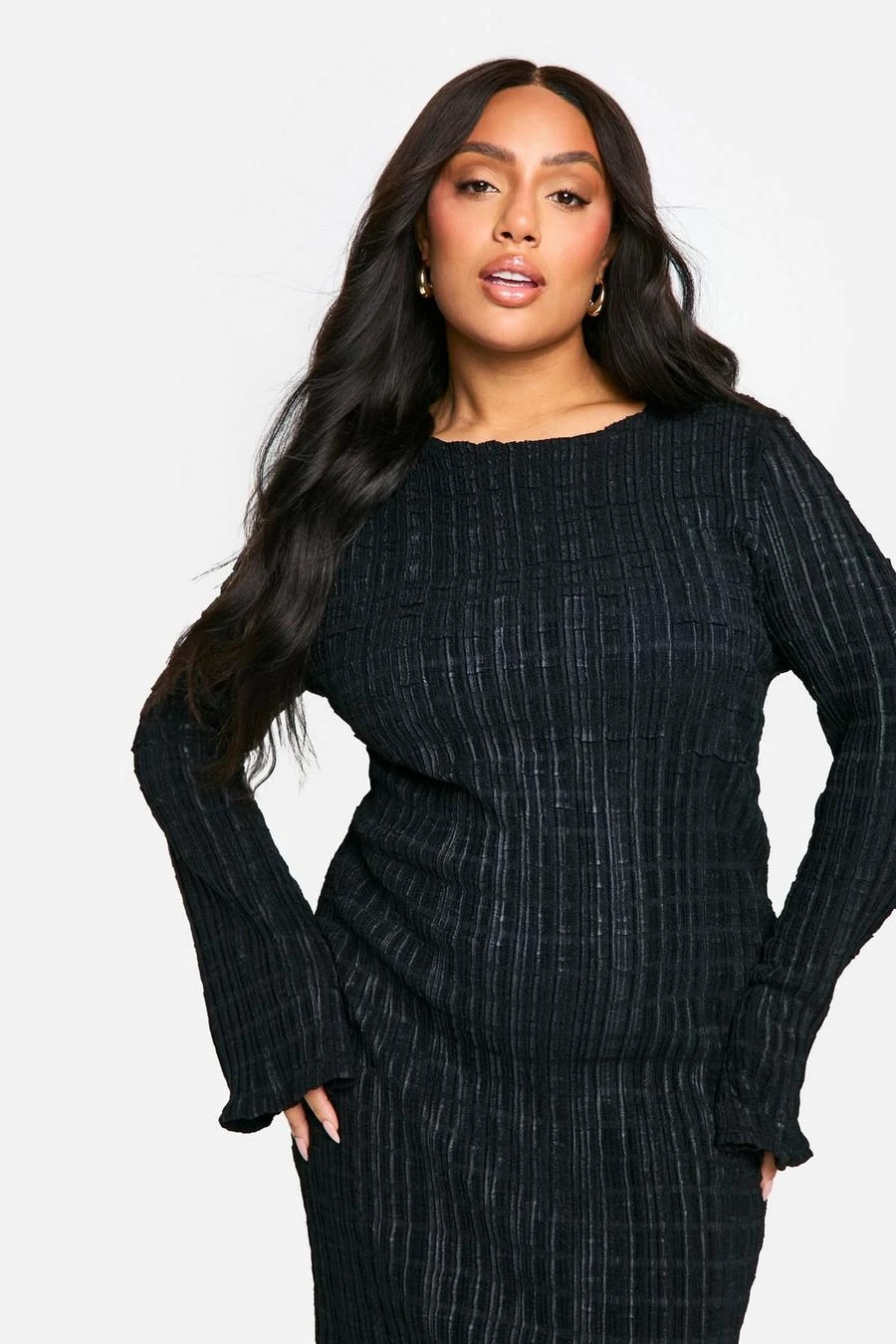 BOOHOO PLUS TEXTURED FLARE SLEEVE MAXI DRESS