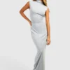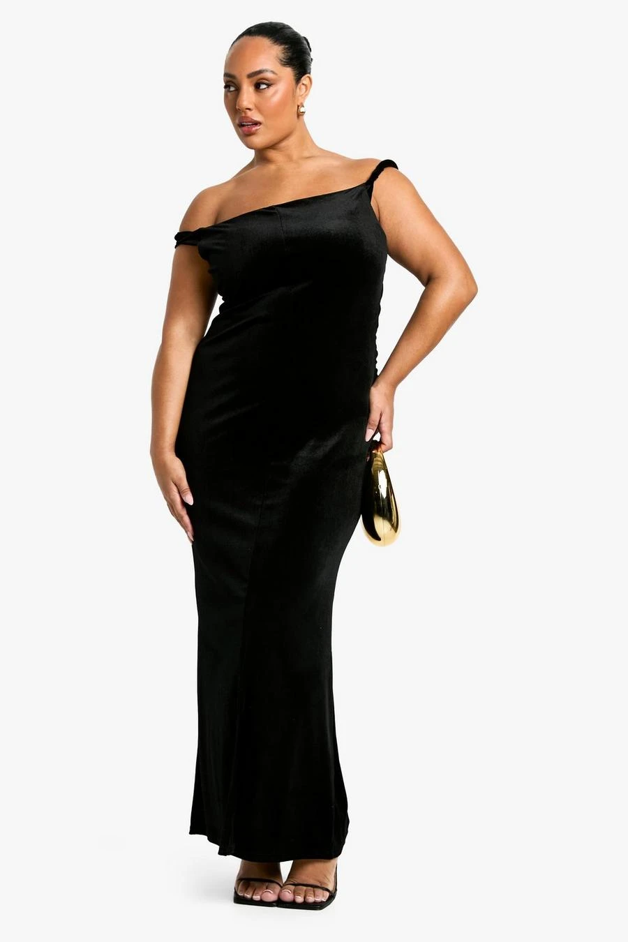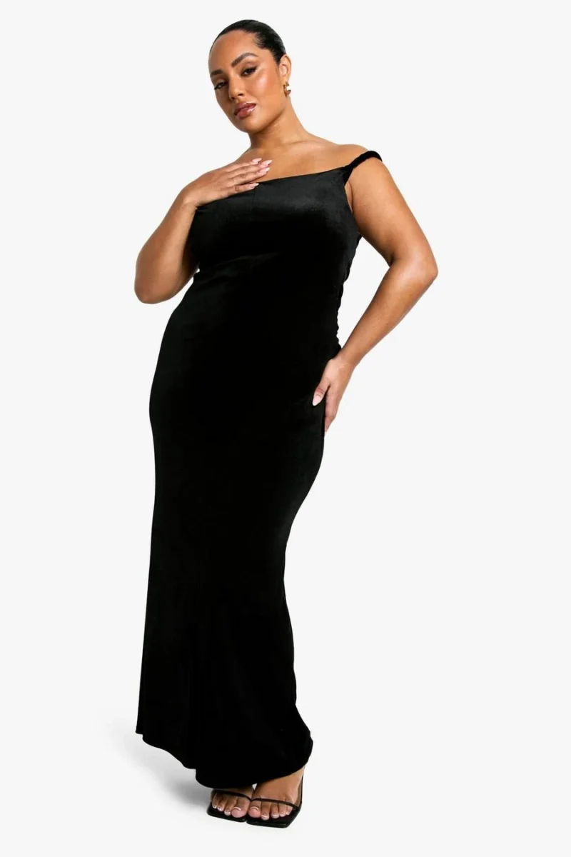 BOOHOO Plus Velvet Asymmetric Ruched Maxi Dress