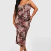 BOOHOO Plus Velvet Asymmetric Ruched Midi Dress