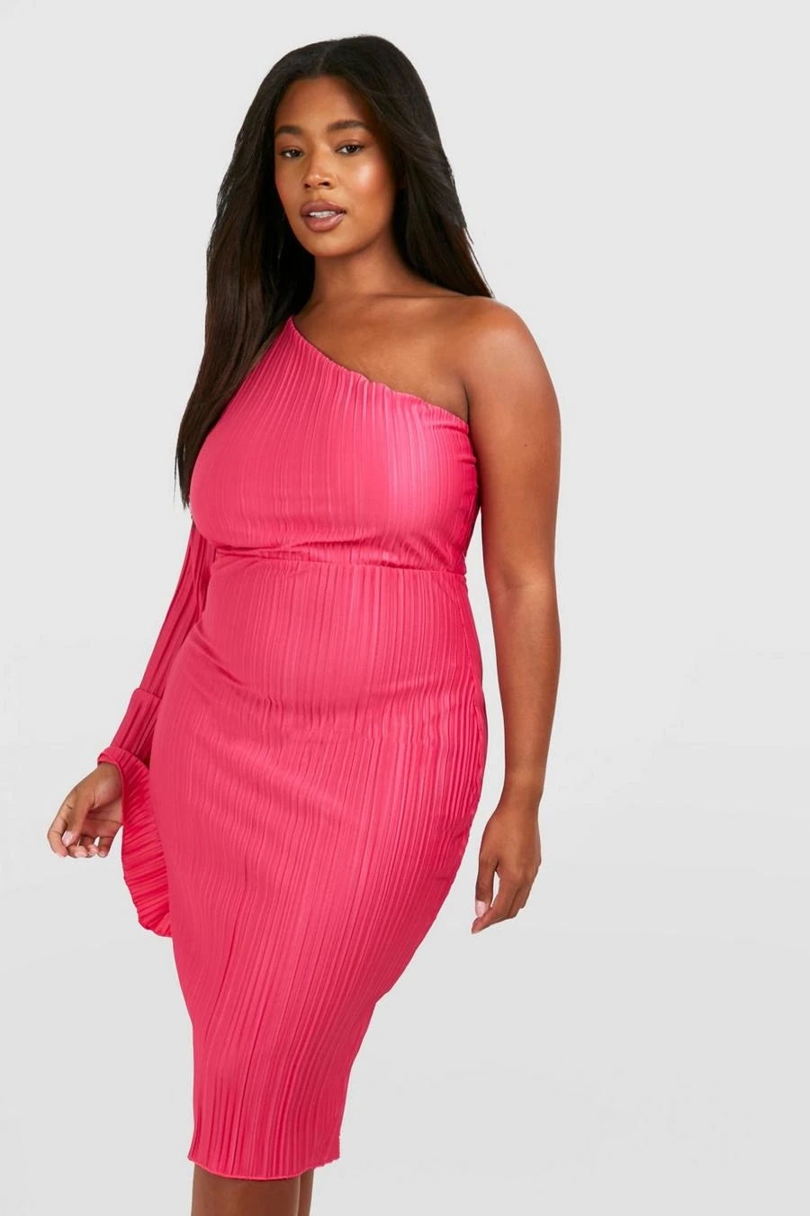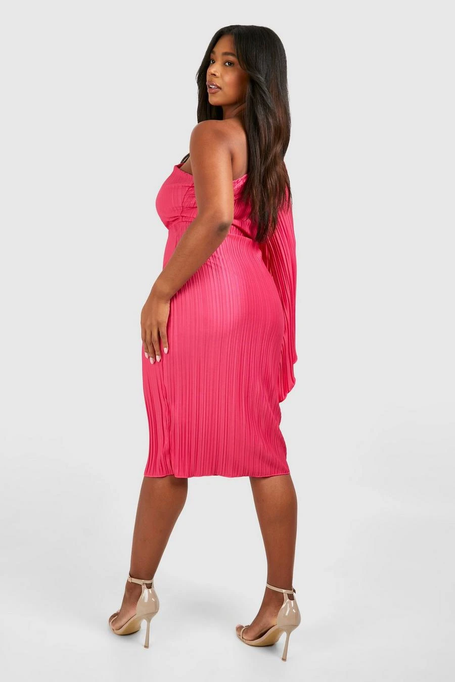 BOOHOO Plus Wide Plisse Cape Sleeve Detail Midi Column Dress