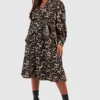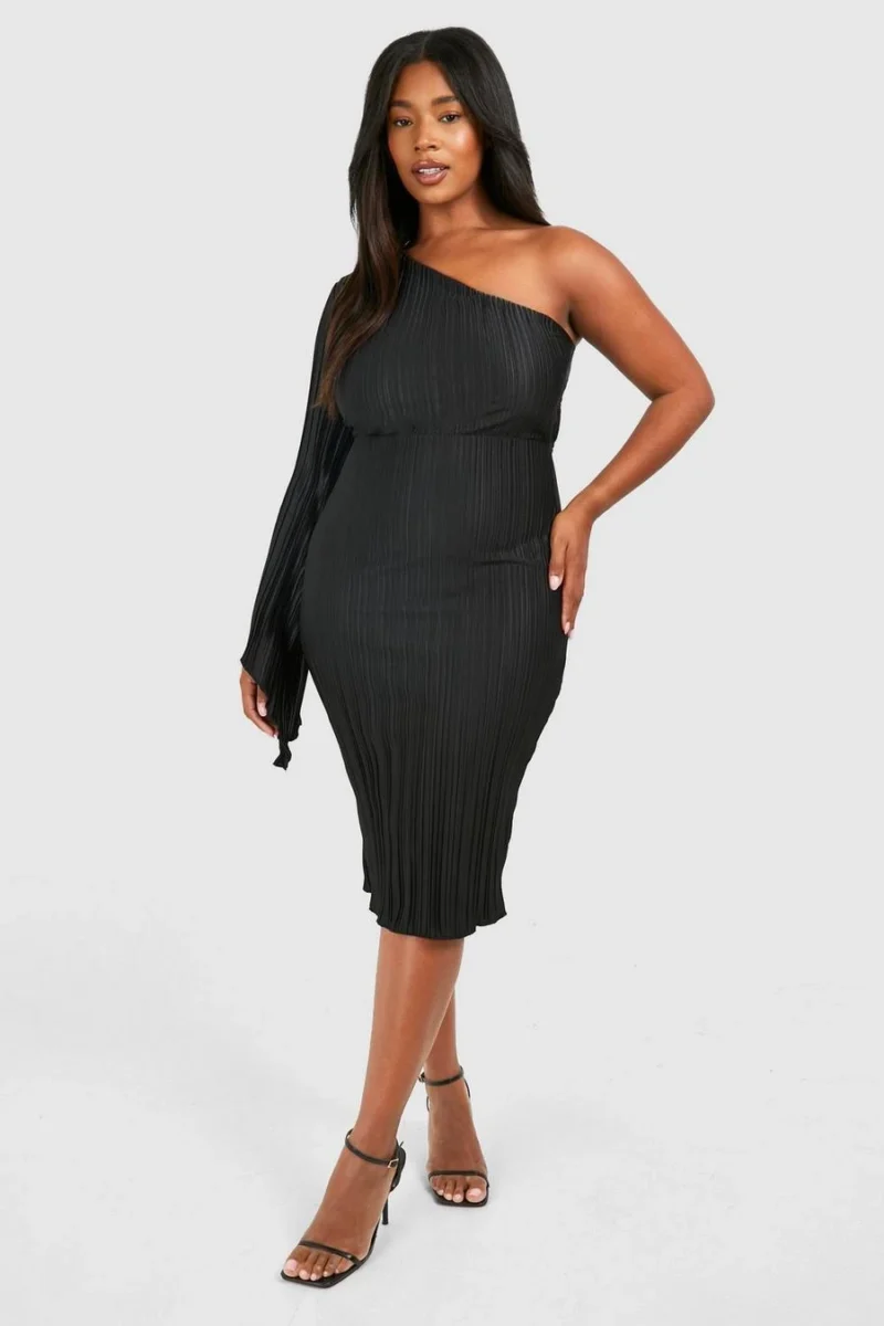BOOHOO Plus Wide Plisse Cape Sleeve Detail Midi Dress